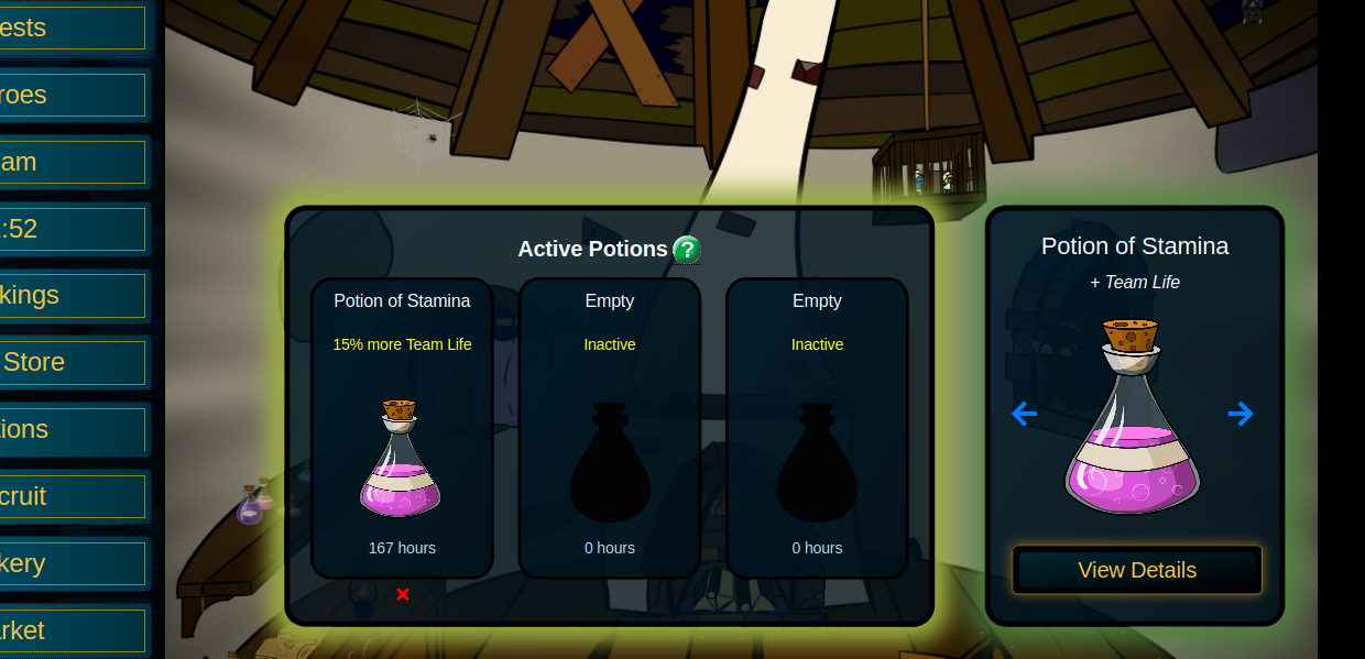 So zu den neuen Funktionen. Wir haben jetzt die Möglichkeit für Brotkrümmel oder Brot uns Zaubertränke zu kaufen. Was ich dann auch gleich getan habe. Es stehen uns jetzt am Anfang erst mal ein Zaubertrank zur Verfügung mit verschiedenen Stärken und Kosten.