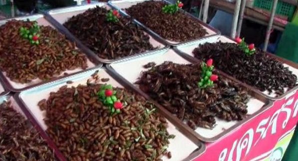 Maden, Grashüpfer, Käfer, Spinnen und selbst Kakerlaken wie Skorpione, bot der Händler an.