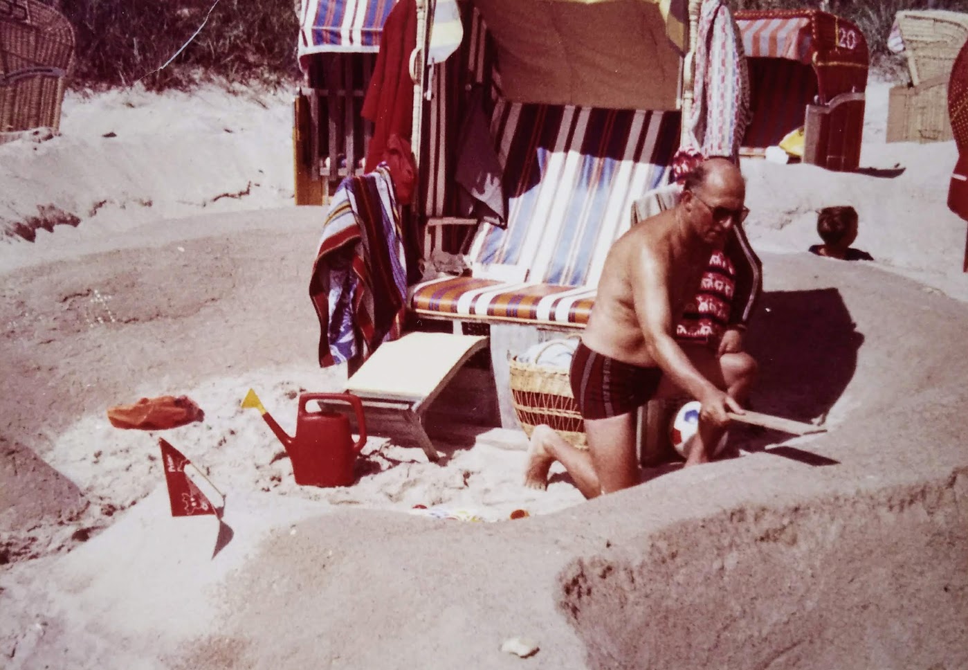 Probably a typical German thing: building sandcastles. My father is going back to his roots here, his family used to be in construction. This and the following pictures were taken in Scharbeutz on the Baltic Coast.