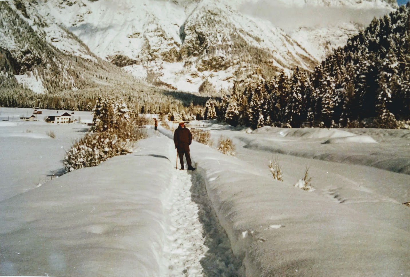 I'm not on this picture but that is how I remember these holidays: the wide valley with so much snow that in some of the cleared walks I could barely look over it.