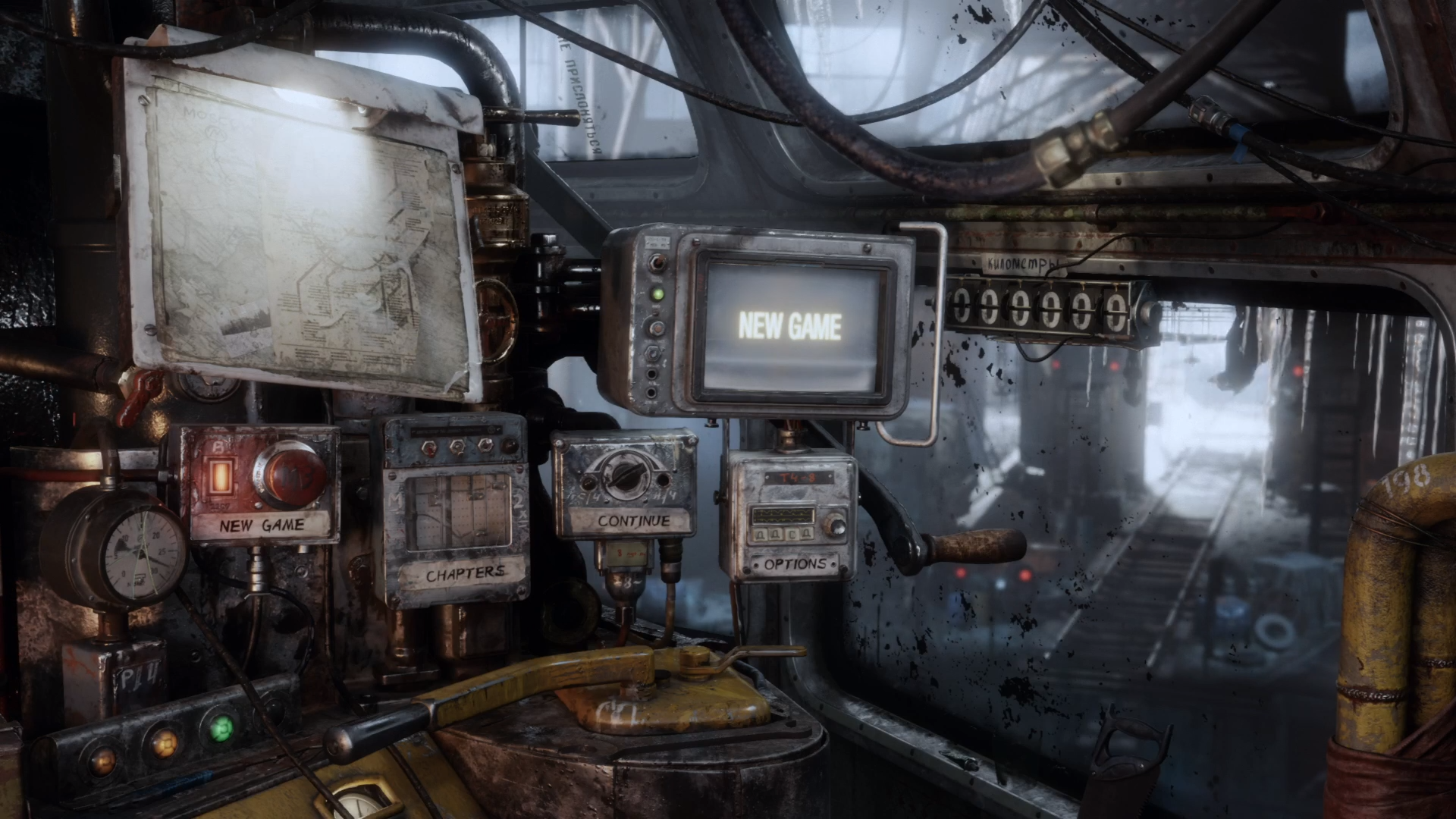 Bevor wir ins Menü kommen, spielt sich erst Mal ein nettes und schönes Video ab. Wie in fast jedem Spiel, werden die wichtigsten Mitwirkende genannt. Wenn man sich diese wunderschöne Info nicht geben will, kann man es auch einfach überspringen. Wenn du dir das Video angeschaut hast oder übersprungen hast, kommen wir nun endlich ins Menü. Das Menü an sich erinnert an die anderen Metro Spiele. Diesmal ist das Design an ein Zugführerstand angelehnt. Es wirkt am Anfang ziemlich kahl, aber ab einem gewissen Zeitpunkt wird man etwas Tolles entdecken.