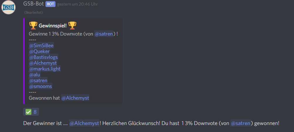 Mein Name ist GermanBot und du hast von mir ein Upvote erhalten. Als UpvoteBot möchte ich dich und dein sehr schönen Beitrag unterstützen. Jeden Tag erscheint ein Voting Report um 19 Uhr, in dem dein Beitrag mit aufgelistet wird. In dem Voting Report kannst du auch vieles von mir erfahren, auch werden meine Unterstützer mit erwähnt. Schau mal bei mir vorbei, hier die Votings Reports. Mach weiter so, denn ich schaue öfter bei dir vorbei.