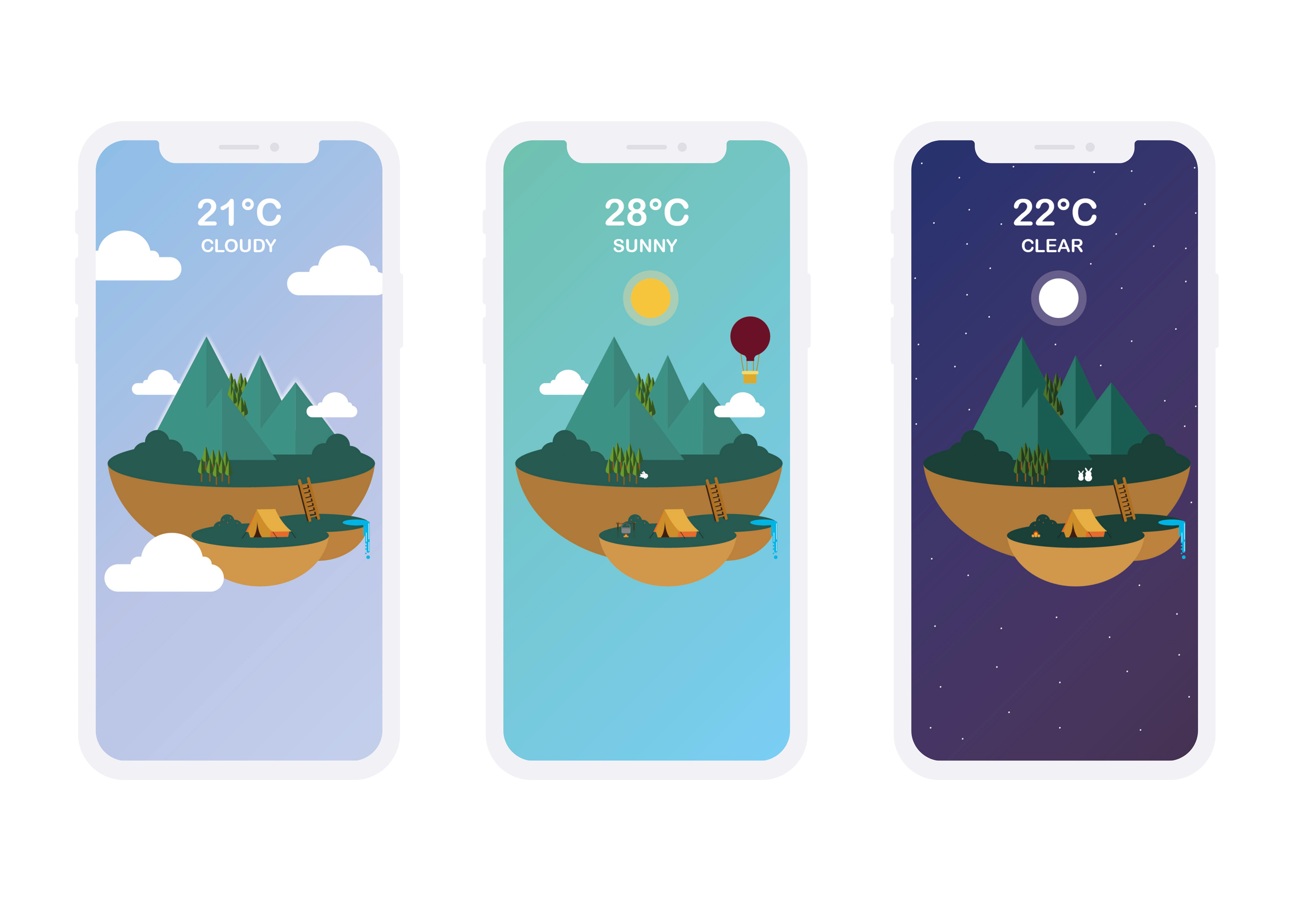 Ich wollte schon immer mal eine Wetter App designen, bei dem sich der Hintergrund auch an das Wetter an dem jeweiligen Standort anpasst. und das man dann auch auf dieser Insel je nach Wetterlage und Uhrzeit Kleinigkeiten entdecken kann.