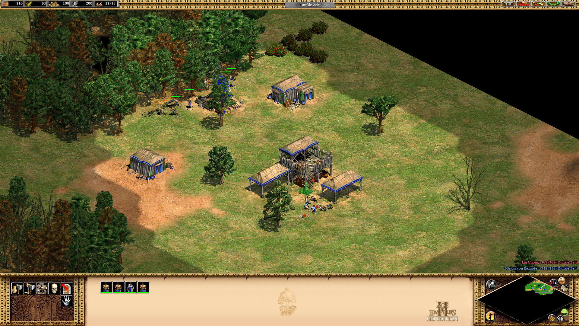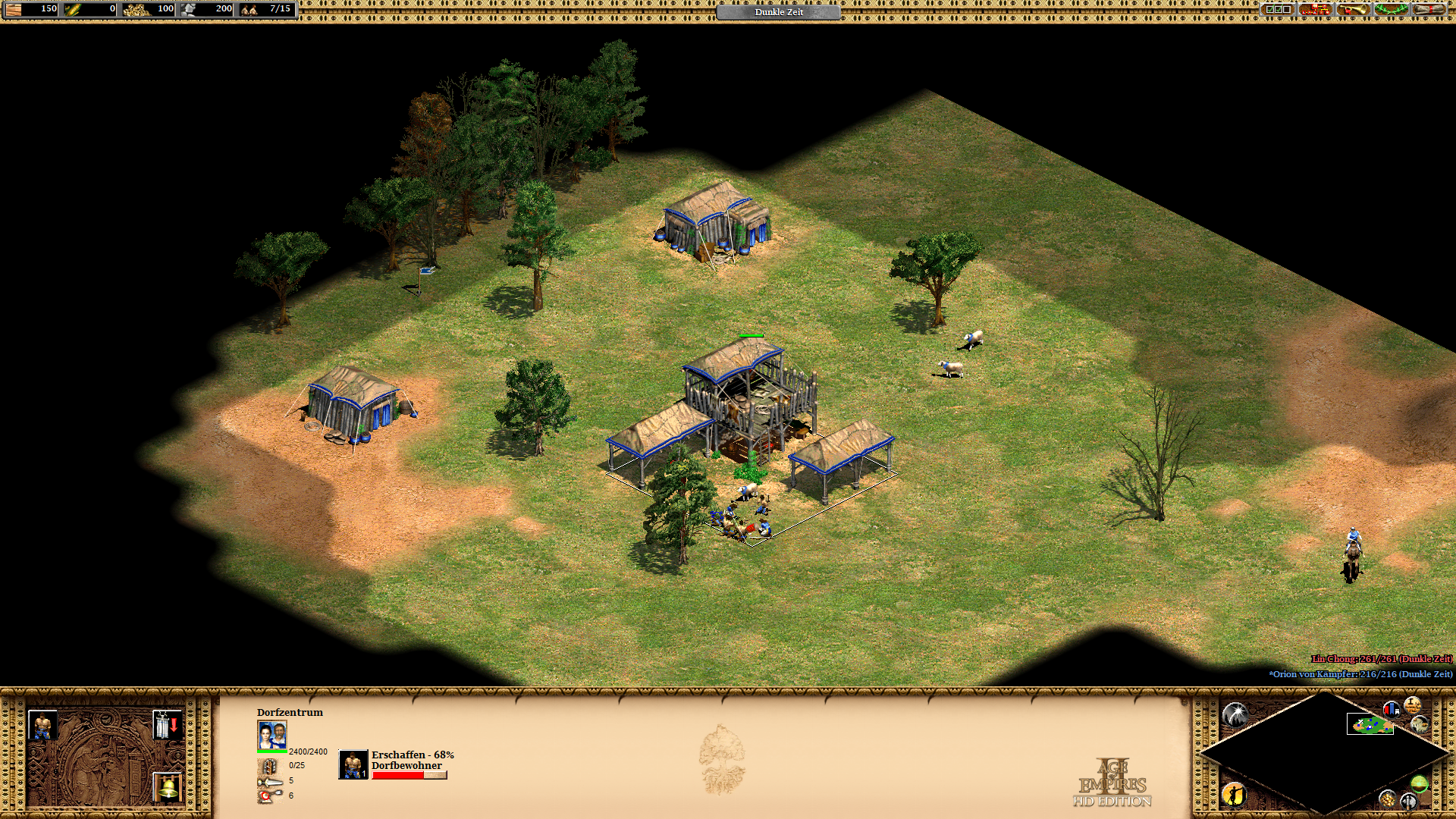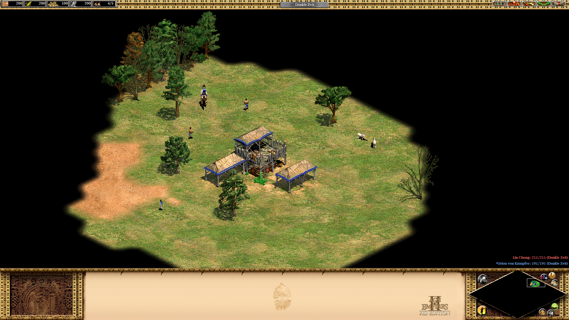 Was ich in diesem Beitrag zeigen möchte ist jedoch etwas, das sich nur unwesentlich verändert hat, weswegen es auch nichts ausmacht, dass die folgenden Screenshots mit HD aufgenommen wurden. Im Prinzip beginnt jedes normale Spiel auf die gleiche Art und Weise: drei Dorfbewohner, ein Scout, 200 Nahrung. Ausnahmen bilden hierbei nur wenige Völker, auf die ich hier nicht näher eingehen werde.