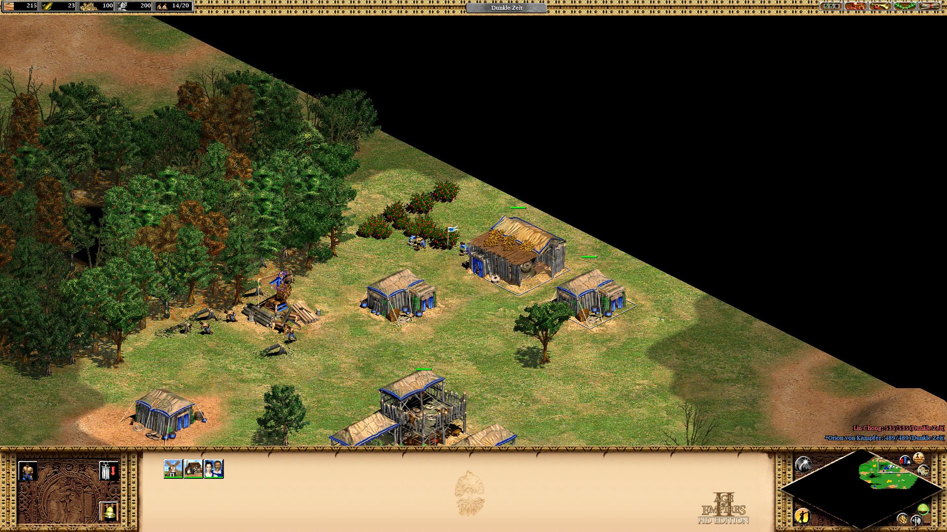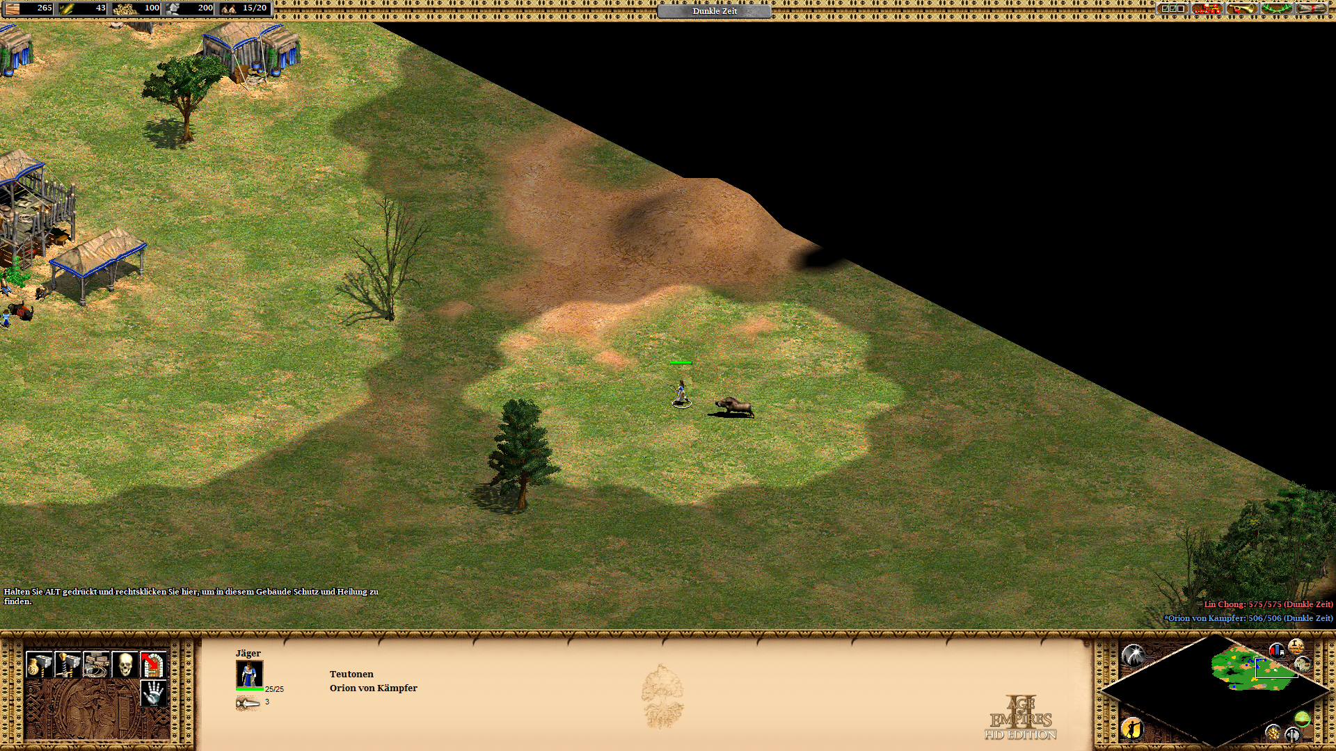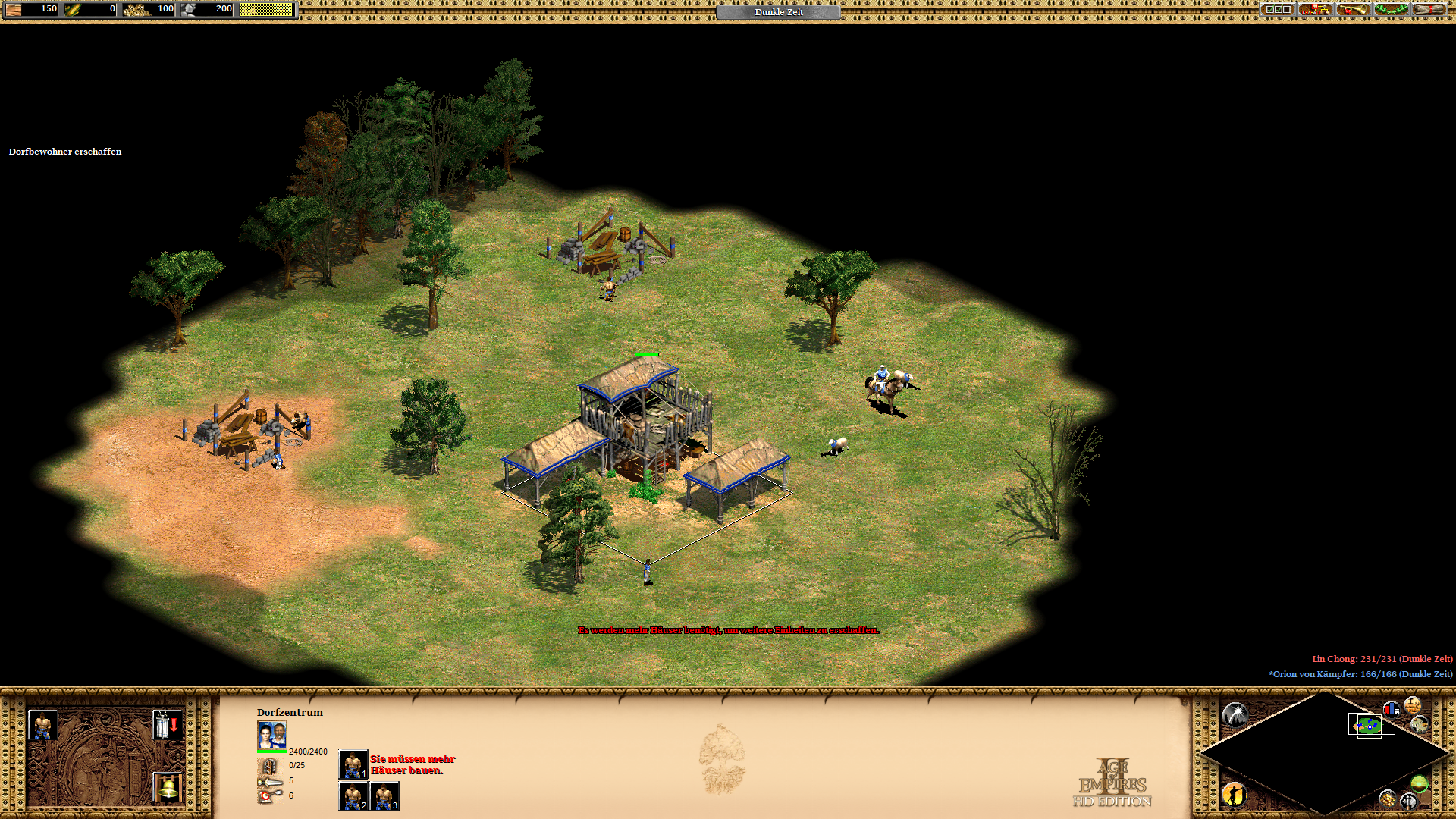 Was ich in diesem Beitrag zeigen möchte ist jedoch etwas, das sich nur unwesentlich verändert hat, weswegen es auch nichts ausmacht, dass die folgenden Screenshots mit HD aufgenommen wurden. Im Prinzip beginnt jedes normale Spiel auf die gleiche Art und Weise: drei Dorfbewohner, ein Scout, 200 Nahrung. Ausnahmen bilden hierbei nur wenige Völker, auf die ich hier nicht näher eingehen werde.