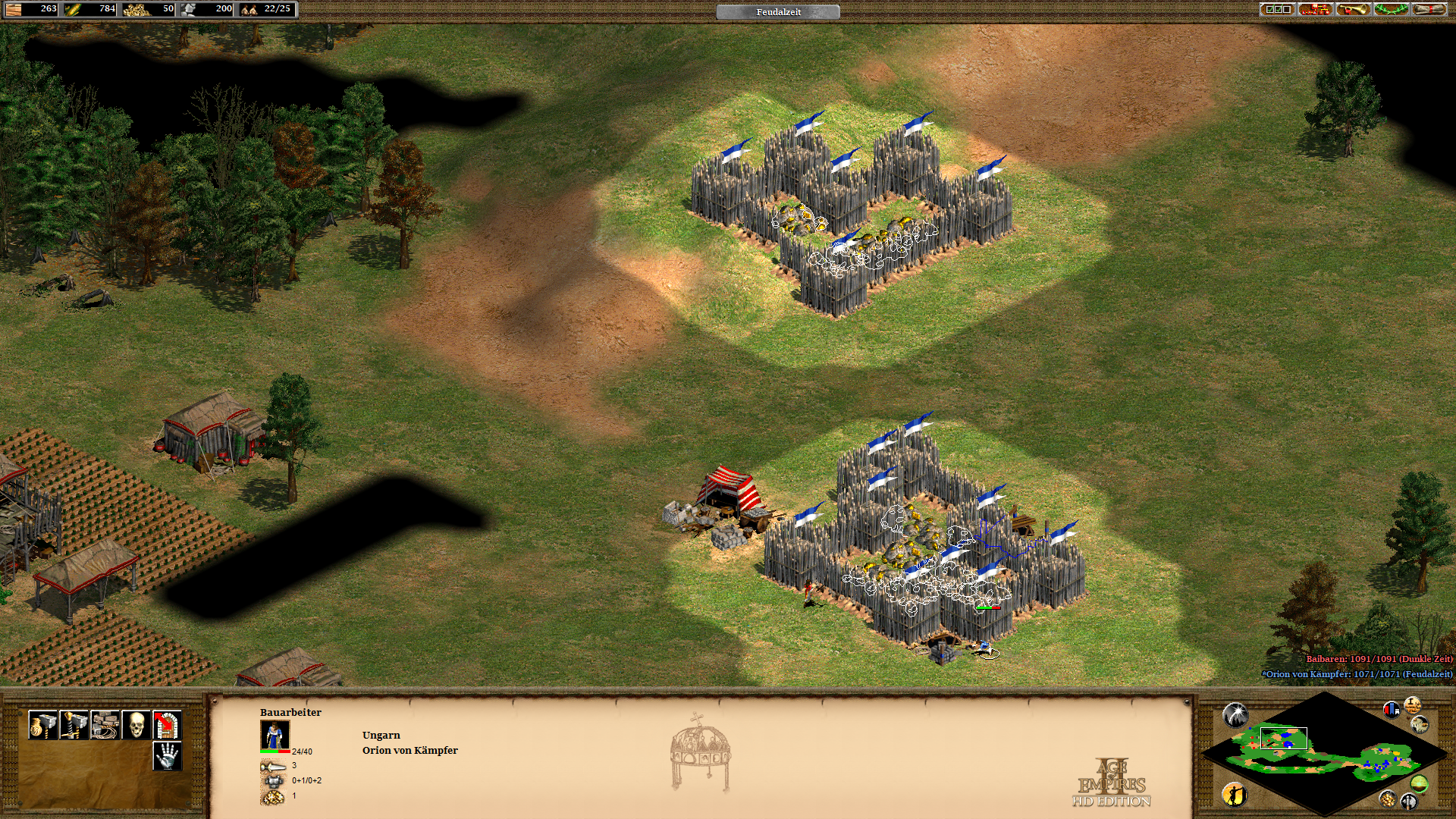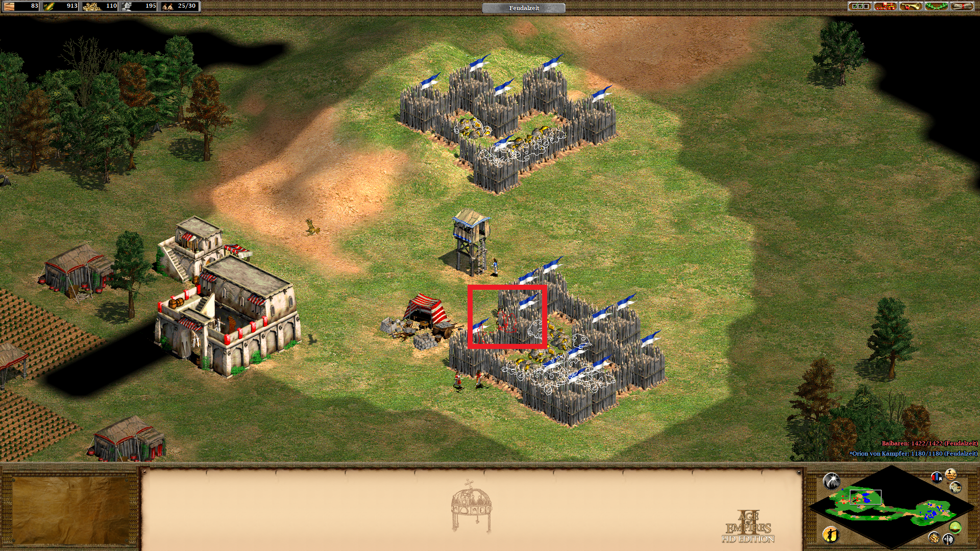 Natürlich lassen sich diese Palisaden auch noch um Mauern erweitern, sobald man zur Feudalzeit vorangeschritten ist. An diesen beißen sich die Einheiten noch länger fest.