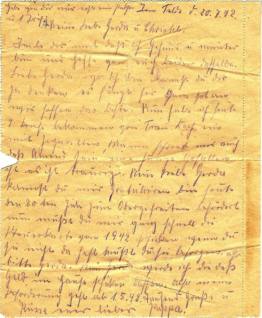 Transkription der Feldpost von 1942:
