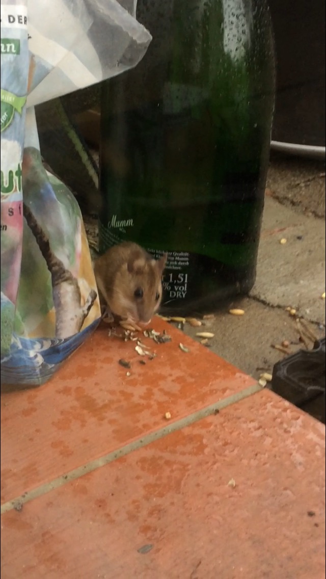 Heute Morgen saß ich am Frühstückstisch und bemerkte wie sich die kleine Maus 🐭 an unserem Vogelfutter zu schaffen machte! Ich ging zum Fenster um ein Foto zu machen, die kleine Maus 🐭 ließ sich von Mir nicht stören und schlug sich weiter den Bauch voll! 😋