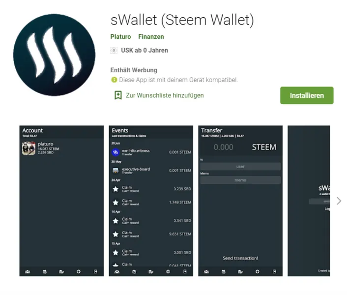 sWallet (Steem Wallet) - Update 0.0.6 - SteemLogin - DE