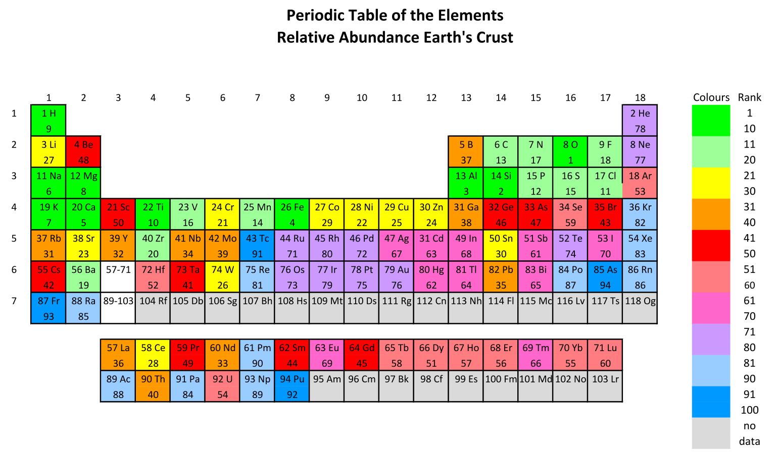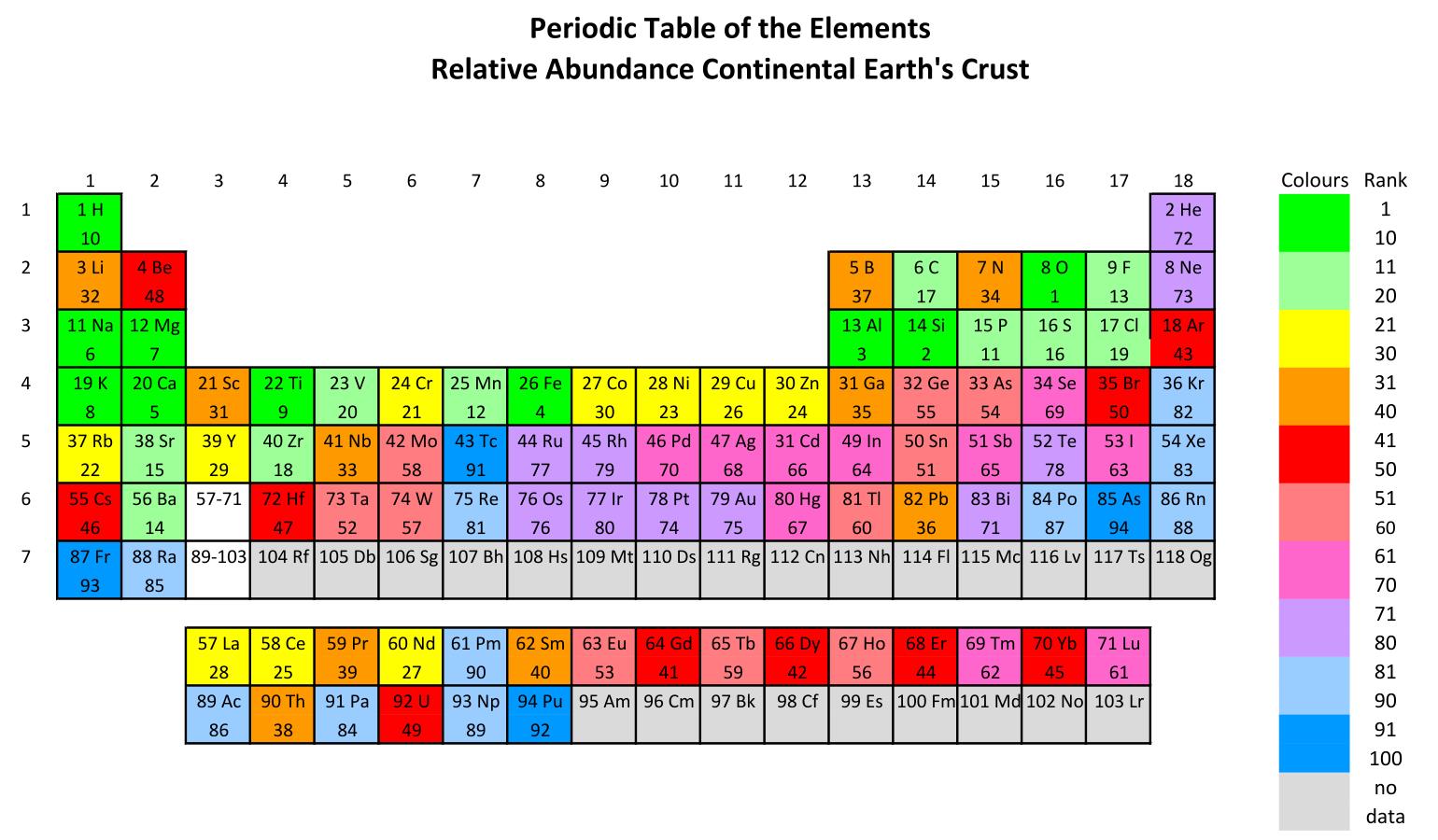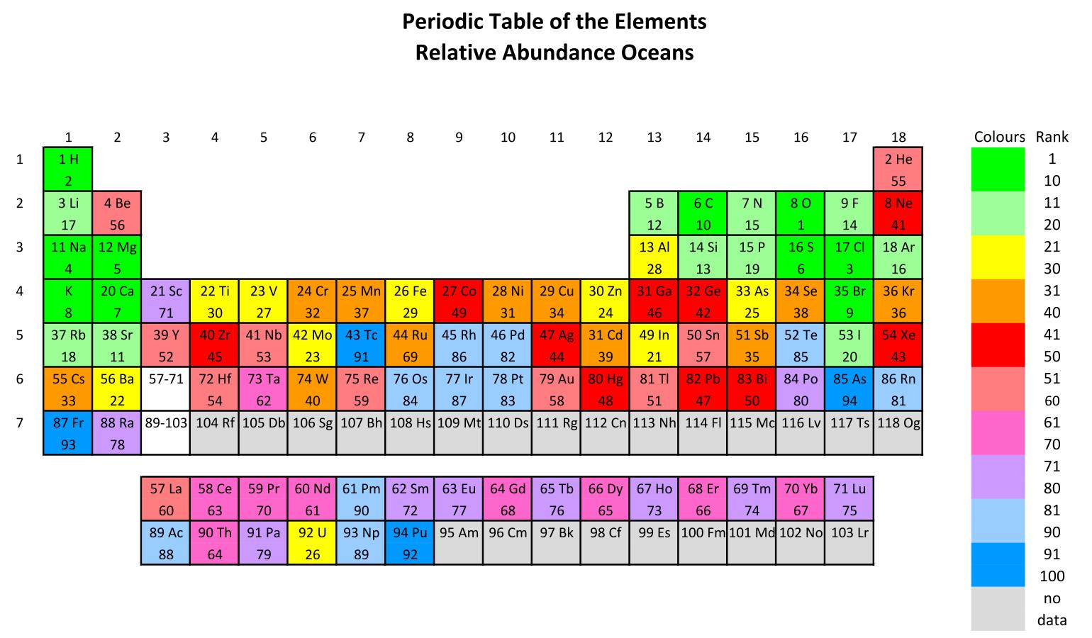| Rk | Elem | Rk | Elem | Rk | Elem | Rk | Elem |