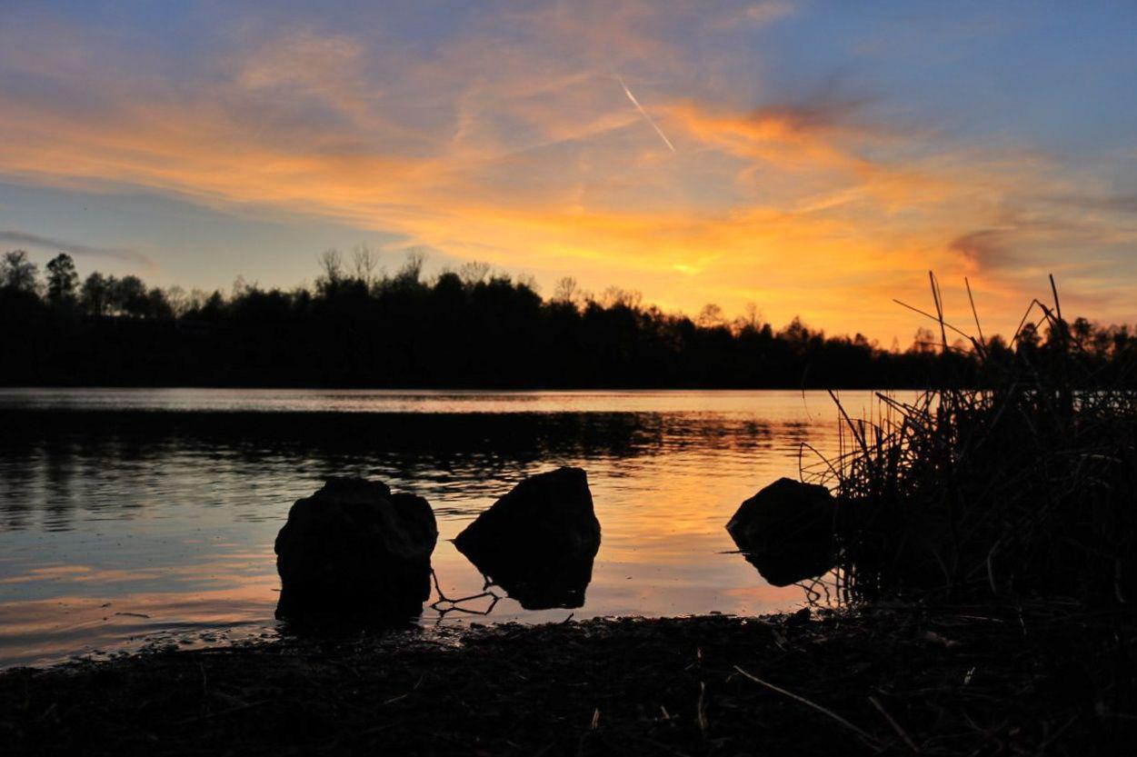 Der Sonne zuschauen wie sie ihr letztes Licht über den See wirft.