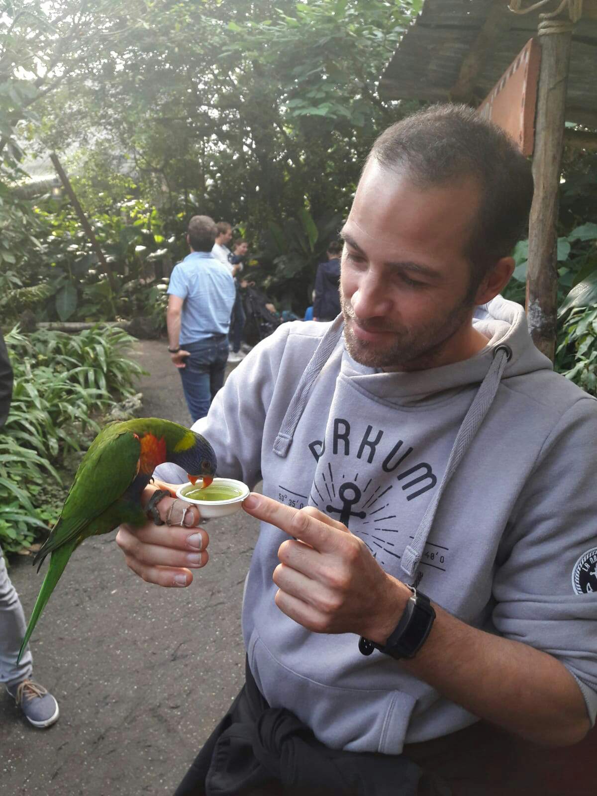 Ich war überrascht wie zutraulich Loris werden wenn sie Hunger haben. War überrascht wo die alle herkamen. Kurzzeitig saßen 5 auf meinen Armen und einer im Nacken. Scheint Rekord gewesen zu sein die anderen Gäste zogen alle ihre Handys :)