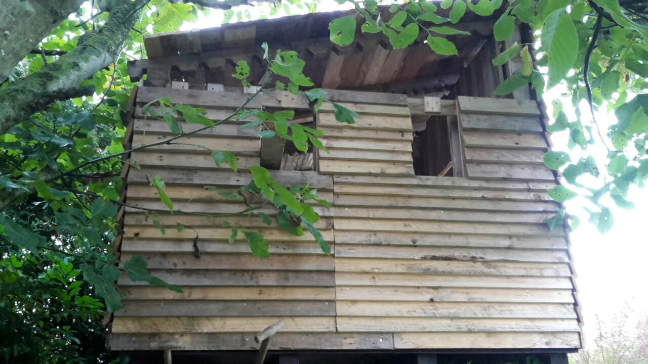 So sehr das Wetter heute auch nervte die Regenpausen wurden im Haus ausgessen. 😎Wir haben heute noch mal Gas gegeben um ordentlich was zu reißen. Ich denke wir sind so bei 90%. Die Fenster müssen noch verkleidet werden Plexiglasscheibe rein und dann das ganze auch noch beweglich damit im Sommer keiner gekocht wird. Der kleine Rest vom Dach zu und die Seiten oben in den Dachschrägen verkleiden. Sowie eine Tür zimmern und Partybeleuchtung rein. Und ganz wichtig Plane und Teerpappe aufs Dach sowie Sonderwunsch des Kunden Tarnnetz. Damit auch ja keiner den Palast sieht 😂😂
