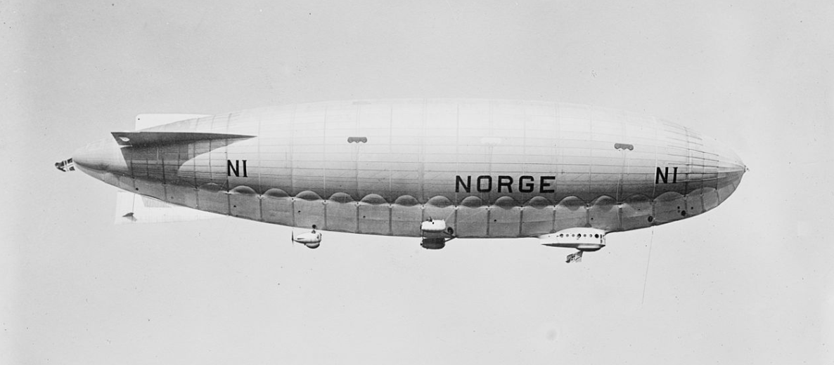 Am 12. Mai 1926 überflog der Norweger Roald Amundsen (der bereits als Erster 1911 den Südpol erreicht hatte), zusammen mit Umberto Nobile und Lincoln Ellsworth an Bord der Norge definitiv den Nordpol (betrat ihn dabei aber nicht). Tragischerweise stürzte Nobile zwei Jahre später bei einem zweiten Flug zum Pol mit dem Luftschiff Italia (einem Nachfolger der Norge) ab. Er wurde zwar danach gerettet dank eines funktionsfähig gebliebenen Radiosenders (3), aber Amundsen kehrte von seiner Rettungsmission, ebenfalls per Flugzeug, nie zurück (4). 2009 blieb eine umfangreiche Suche nach seinem Wrack in der Barentssee erfolglos (5).