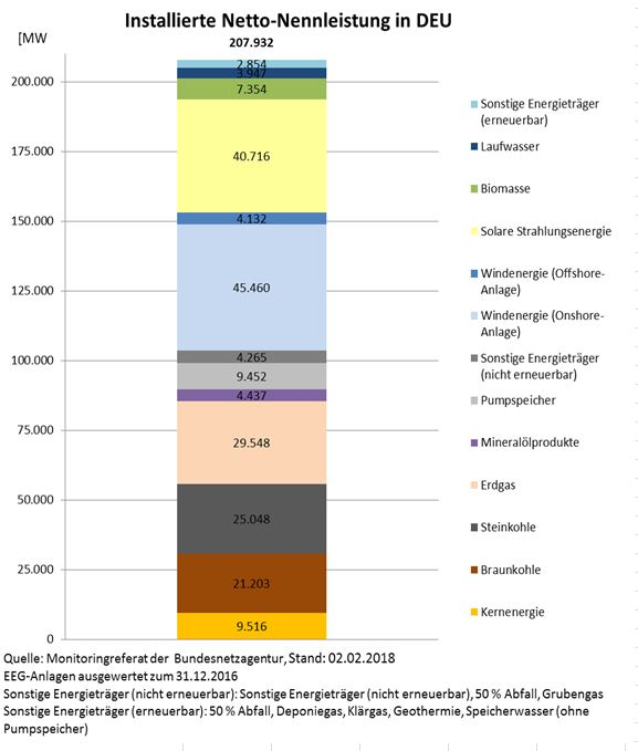 Zur Deckung des Leistungsbedarfs haben wir (noch) die konventionellen Kraftwerke, also die Kern-, Kohle- und Gaskraftwerke mit einer installierten Leistung von ca. 100.000 MW (s. Abb.).