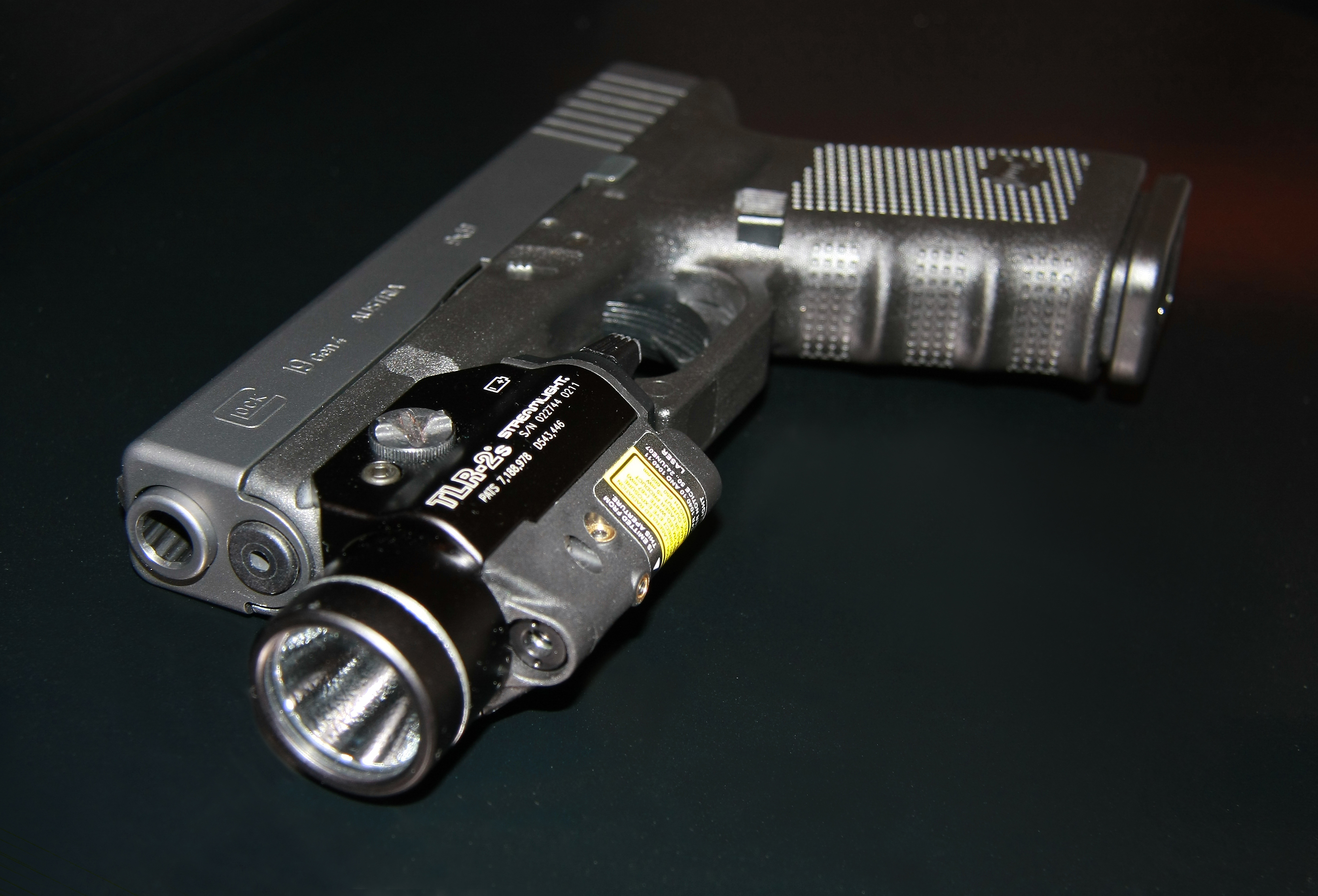 Eine Glock 19, Gen 4 mit Laser/Licht-Kombi
