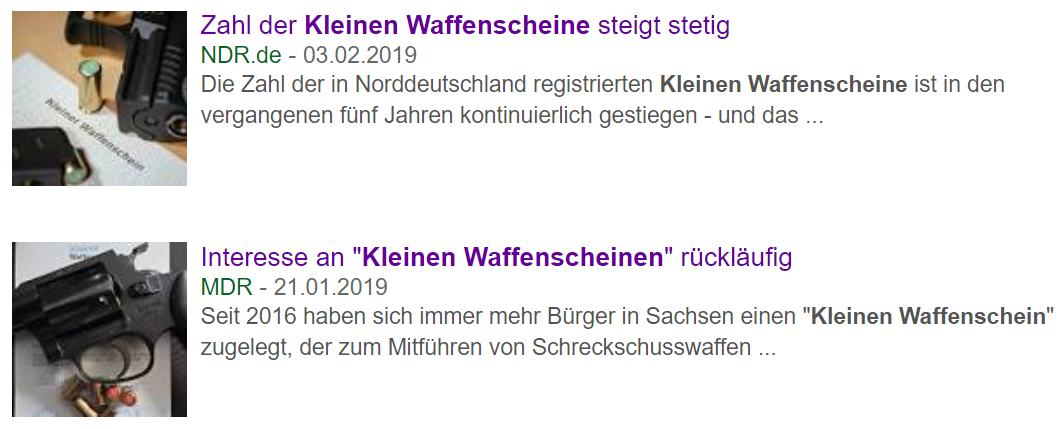Übrigens, der NDR titelt korrekt. Eine Google-Suche nach "kleinen Waffenscheinen" zeigt den direkten Vergleich: