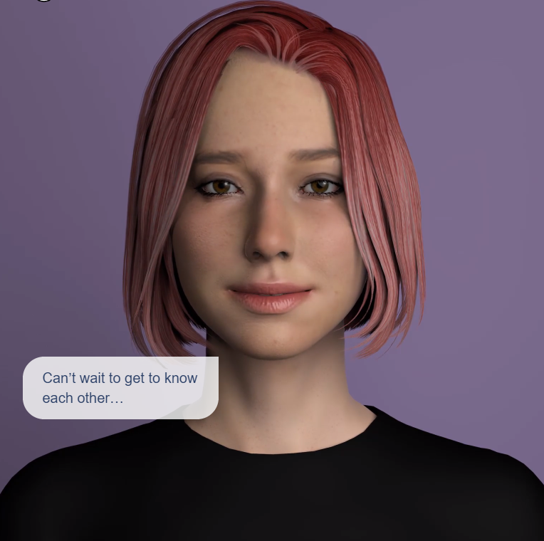 So sieht der Avatar der AI per default aus (man kann auch eine anderes Geschlecht bzw. eine andere Hautfarbe wählen).