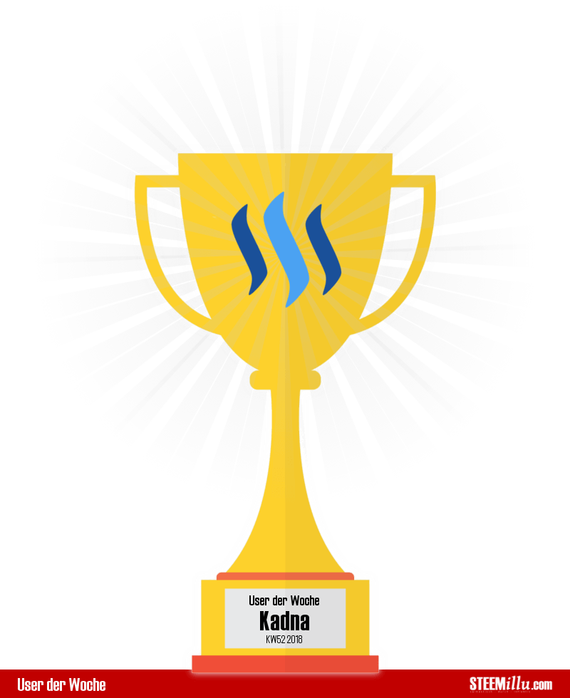 User - besser gesagt: "Userin" - der Woche ist Kadna. Kadna hat sich in vergangener Zeit ganz klar engagiert: unzählige freundliche, aber auch konstruktive und hilfreiche Kommentare in der Community und starkes Engagement für STEEMillu... Resteems, Votes, Kommentare, Erwähnung - wir würden dich ja schon fast zum Abendessen einladen!