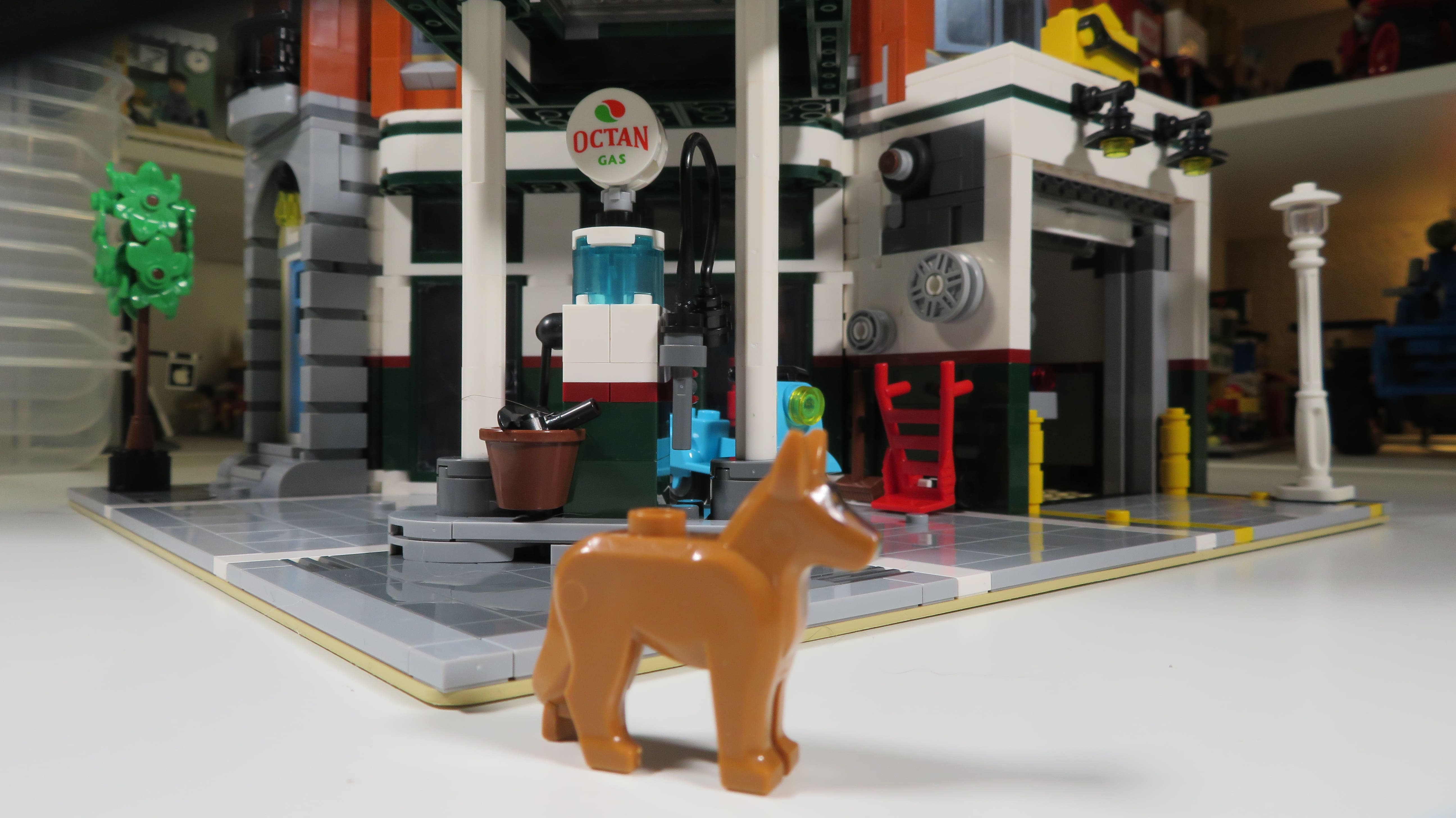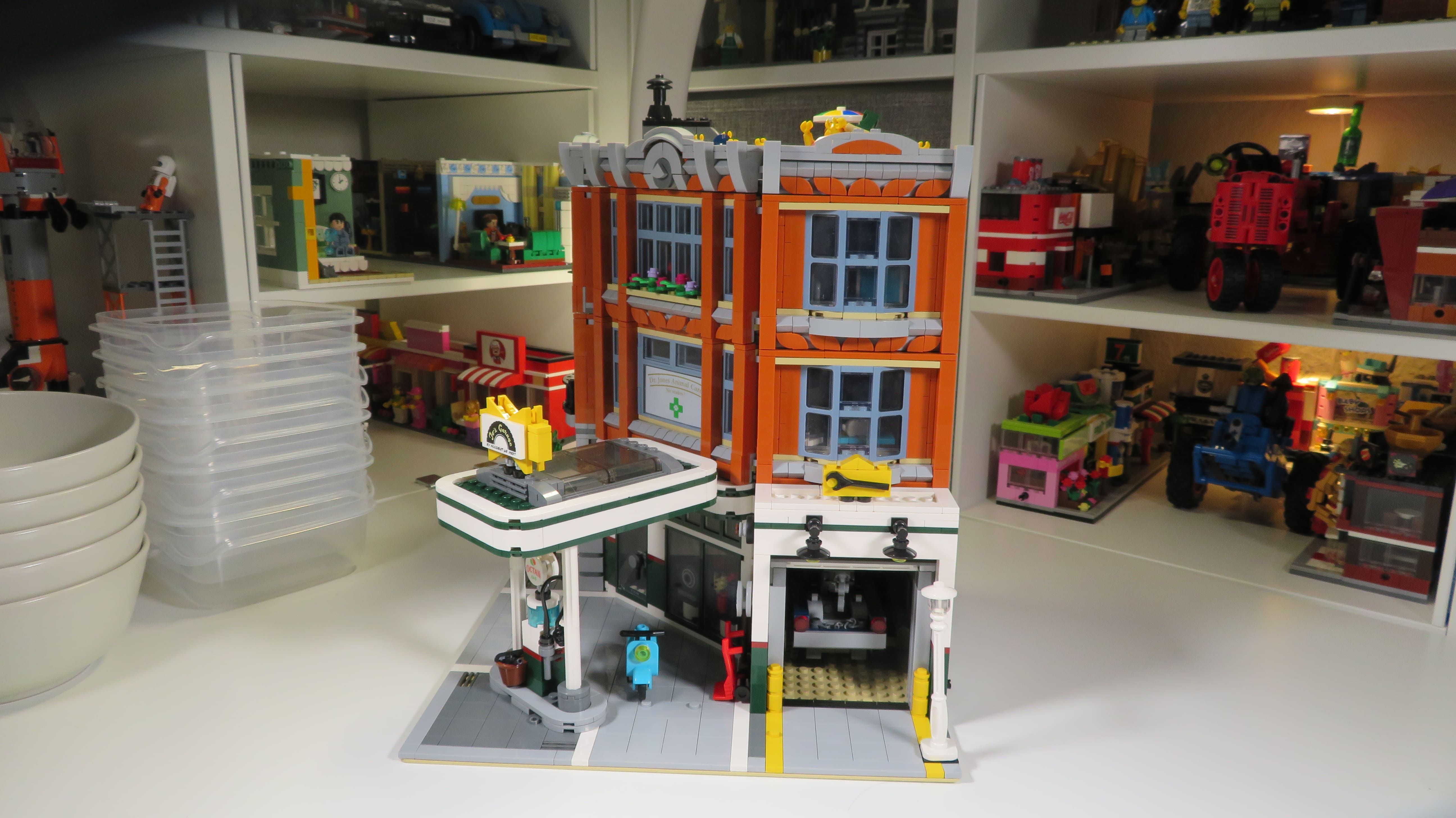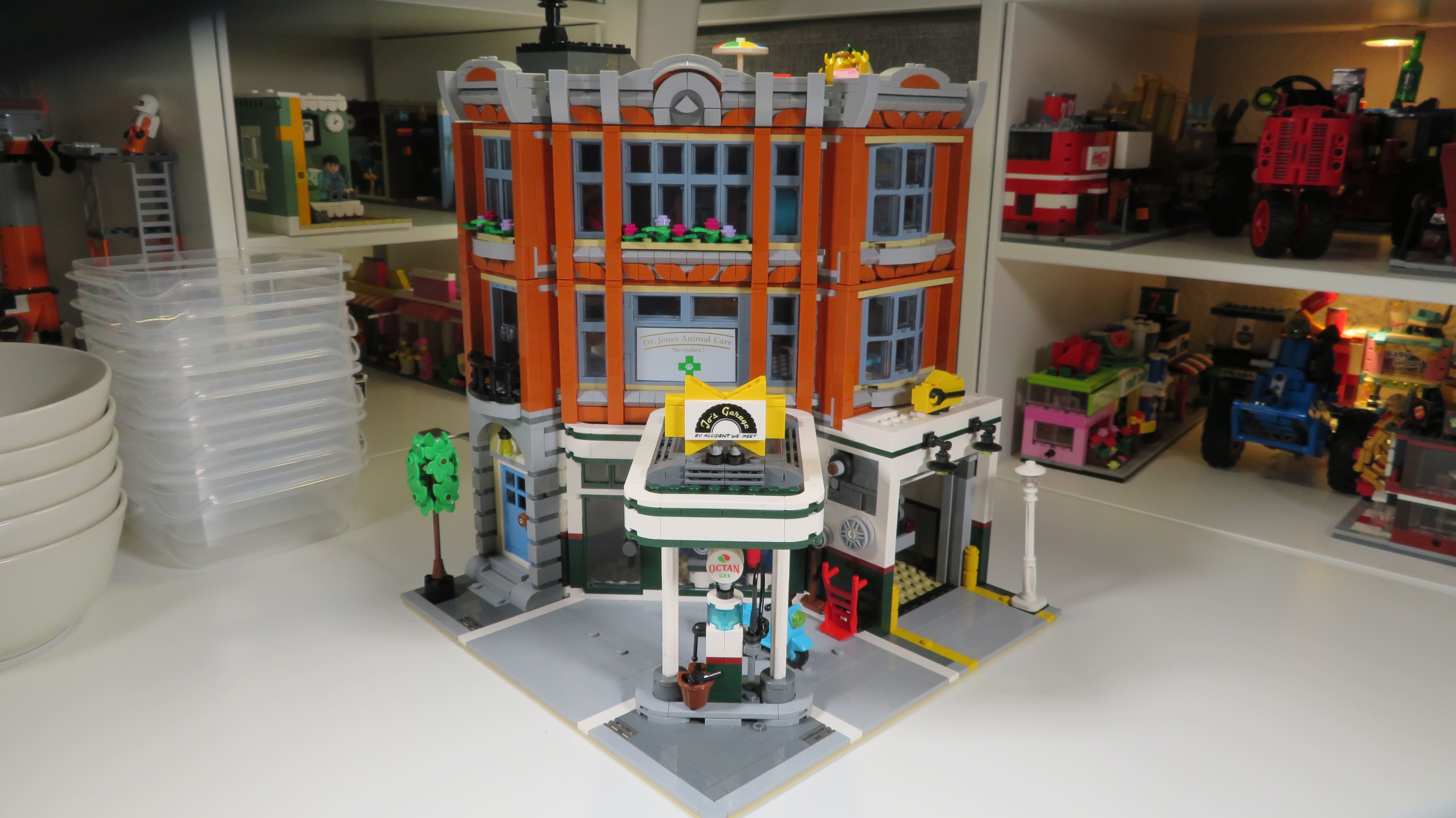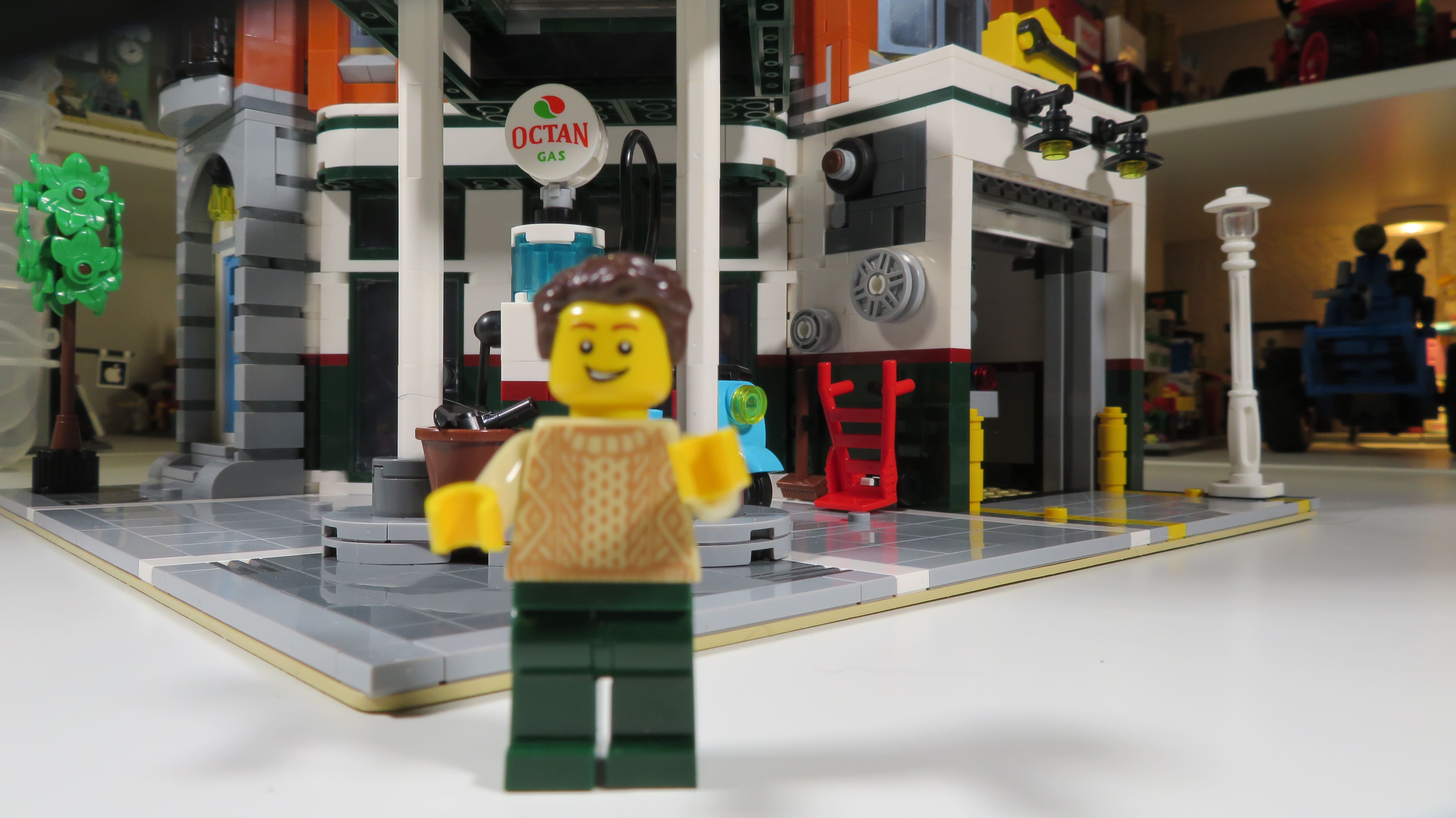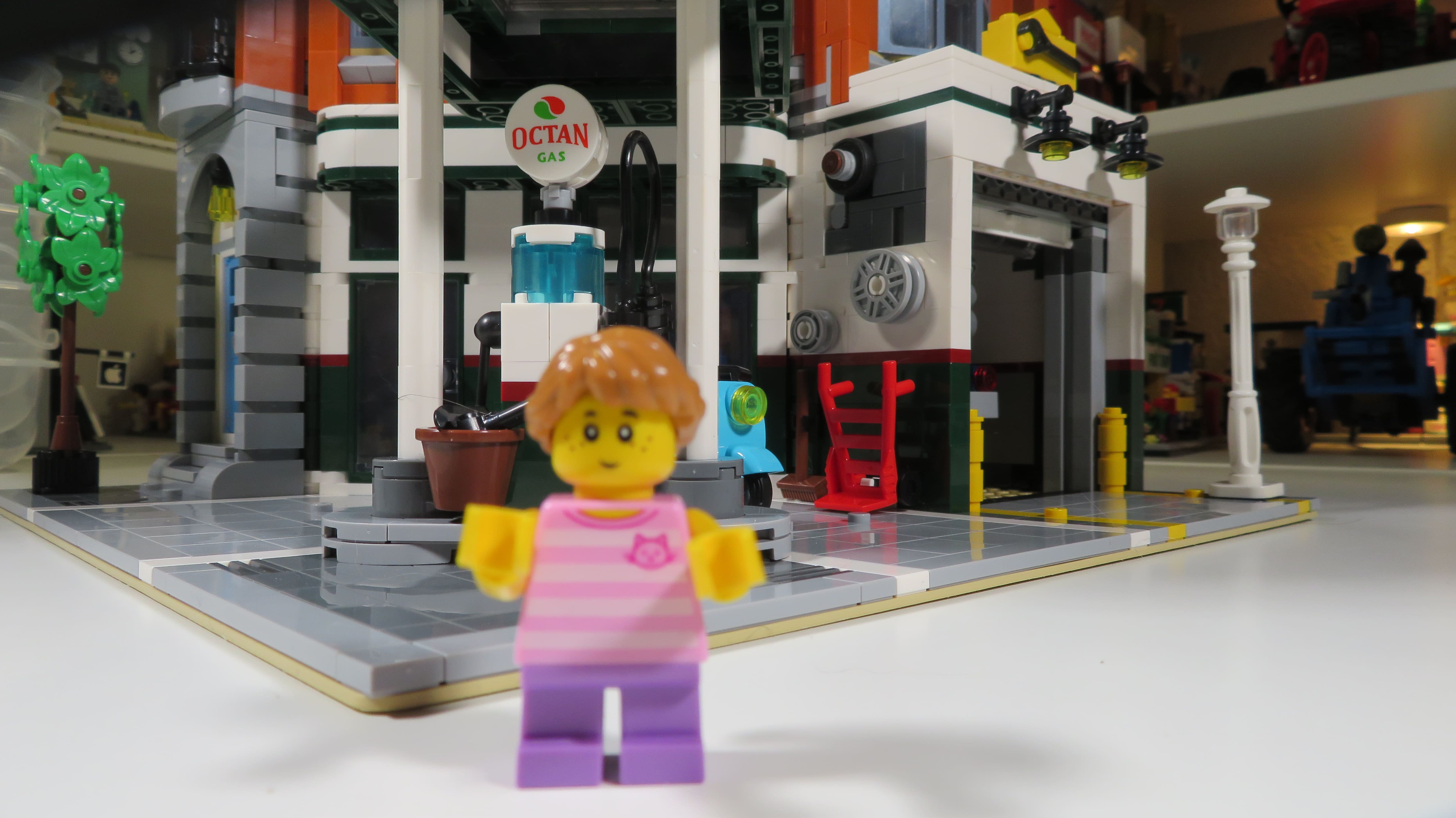 Heute stelle ich Euch das Modular Gebäude die Eckgarage von Dinggao vor. Dinggao war eine kurzfristig erscheinende Firma, die aber in letzter Zeit nichts mehr rausgebracht hat. Ich denke, es ist der Name für kurzfristig von Sembo benutzt. Die Setnummer ist DG006, das Set hat 2569 Teile. Zusätzlich gibt es einen Motorroller, einen Abschleppwagen,l 6 Minifiguren. einen Papagei, ein Kaninchen, ein Hund, einen Frosch und einen Fisch.