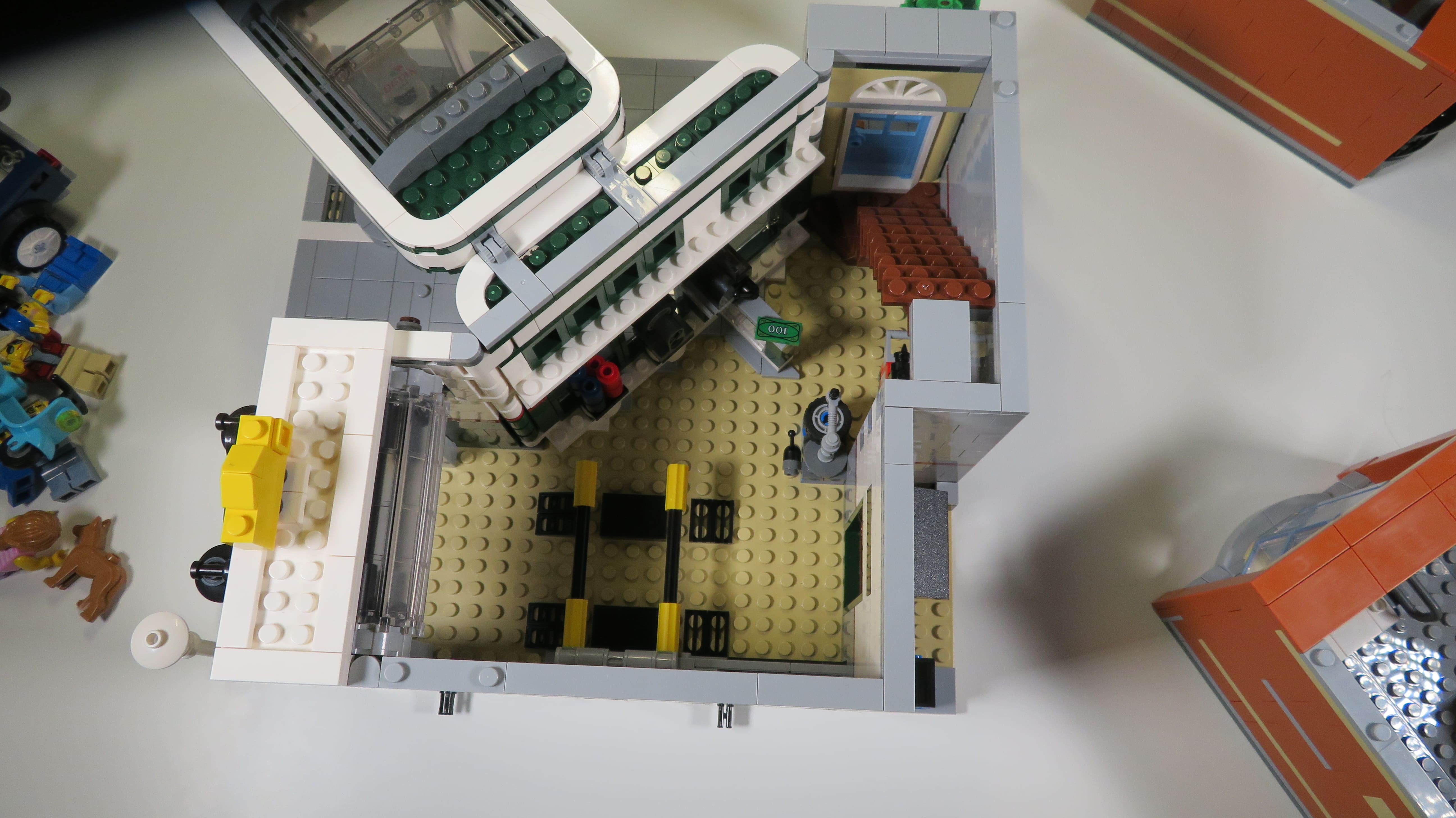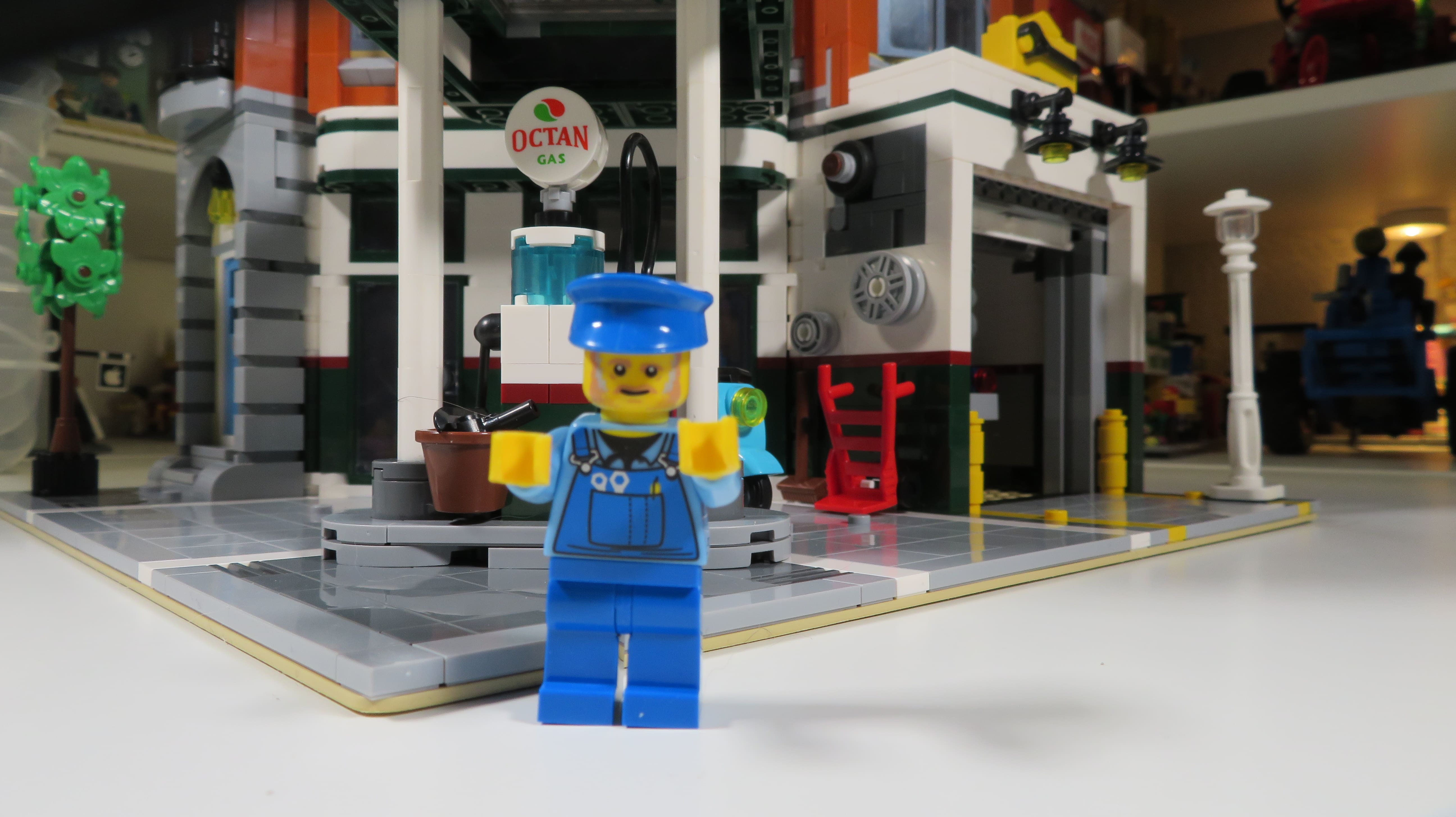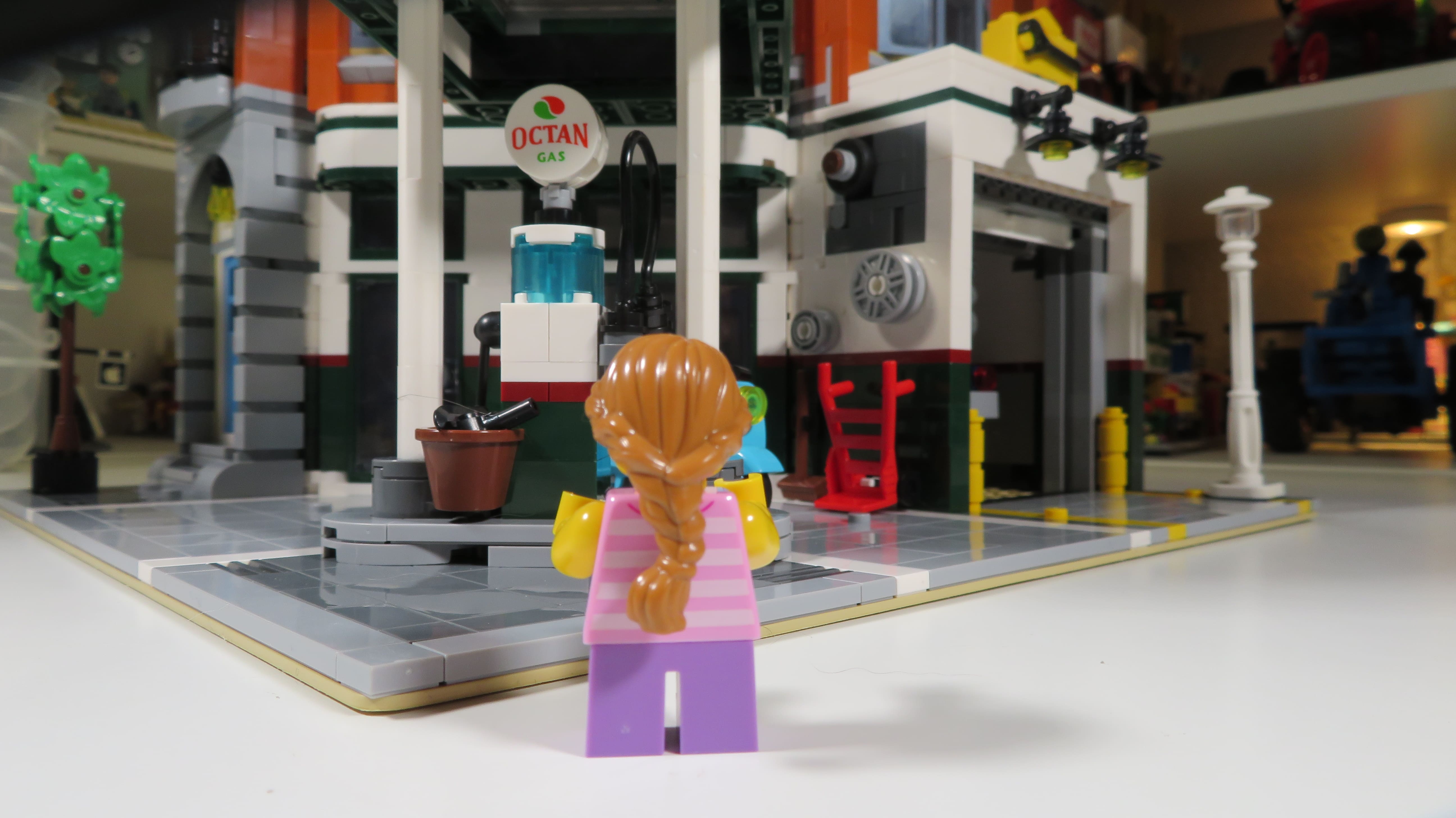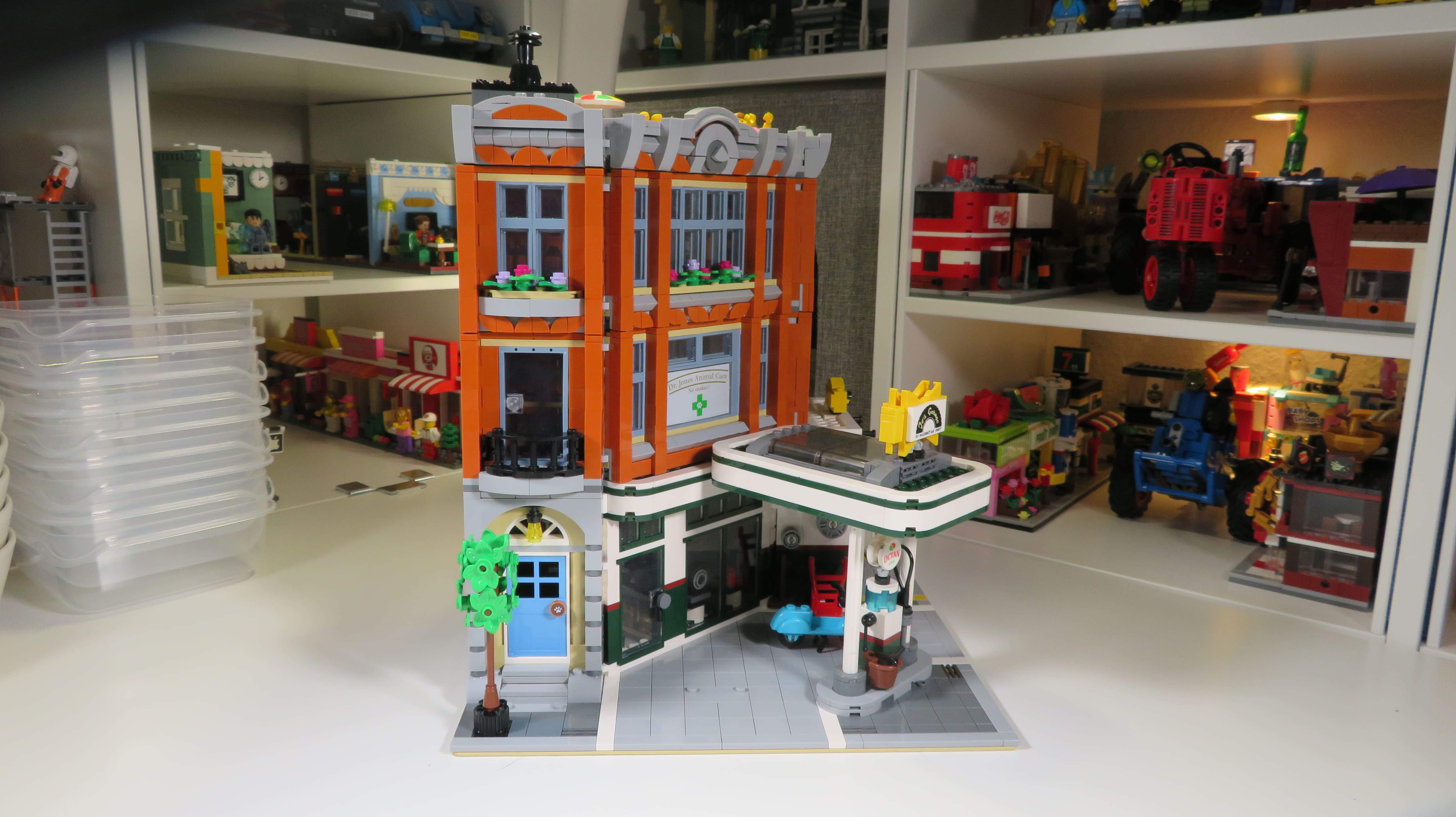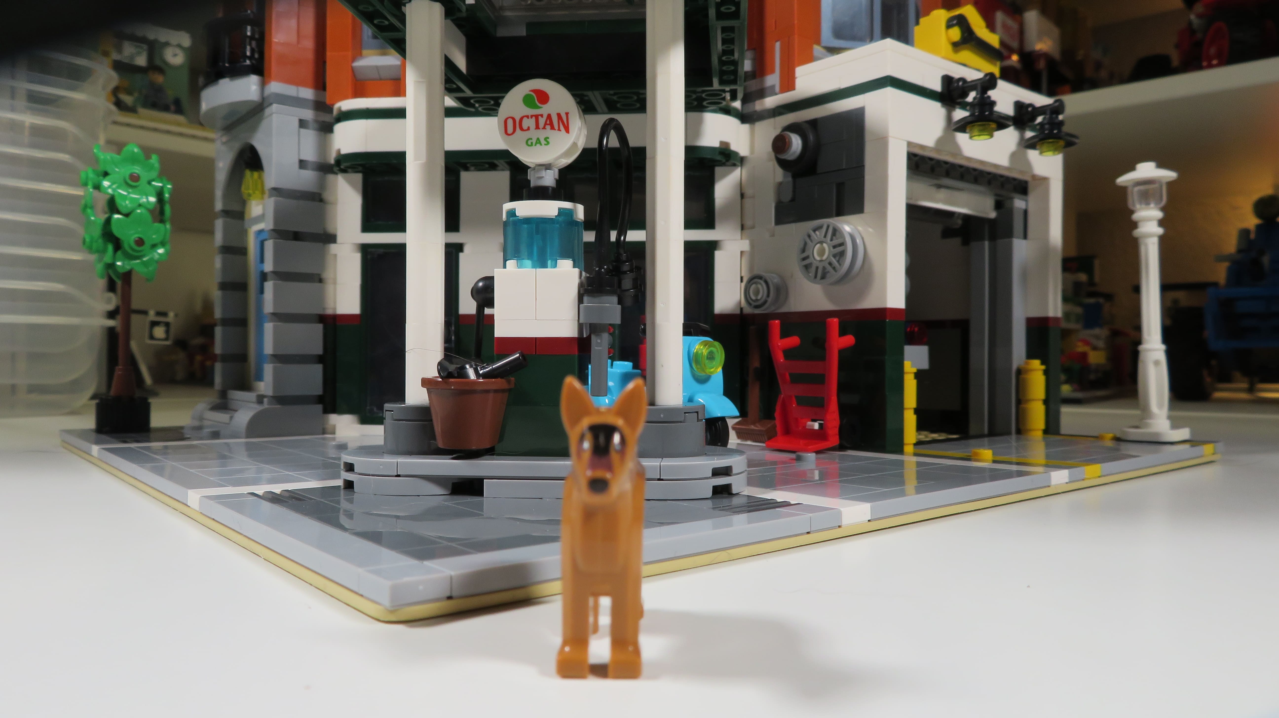 Heute stelle ich Euch das Modular Gebäude die Eckgarage von Dinggao vor. Dinggao war eine kurzfristig erscheinende Firma, die aber in letzter Zeit nichts mehr rausgebracht hat. Ich denke, es ist der Name für kurzfristig von Sembo benutzt. Die Setnummer ist DG006, das Set hat 2569 Teile. Zusätzlich gibt es einen Motorroller, einen Abschleppwagen,l 6 Minifiguren. einen Papagei, ein Kaninchen, ein Hund, einen Frosch und einen Fisch.