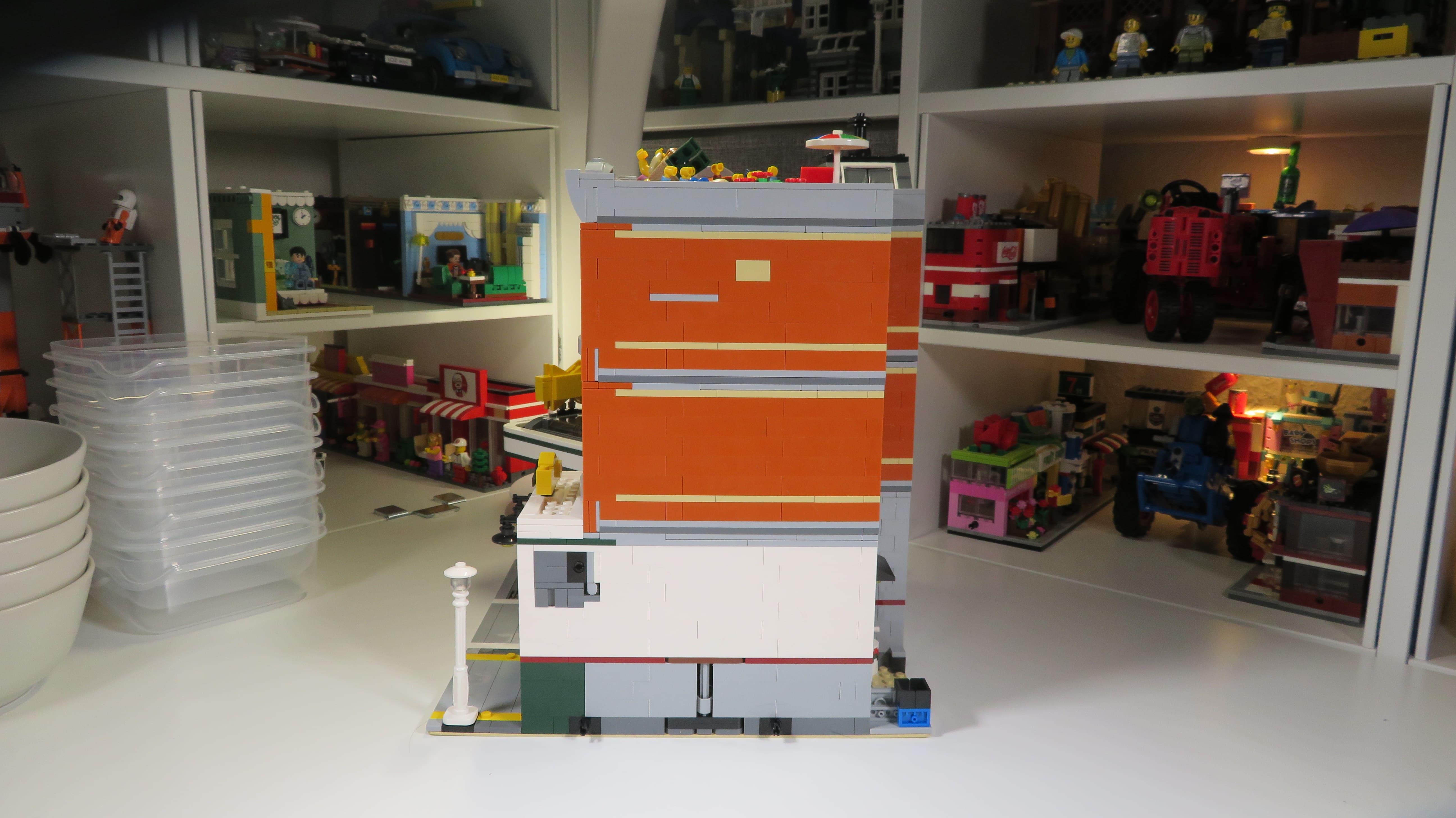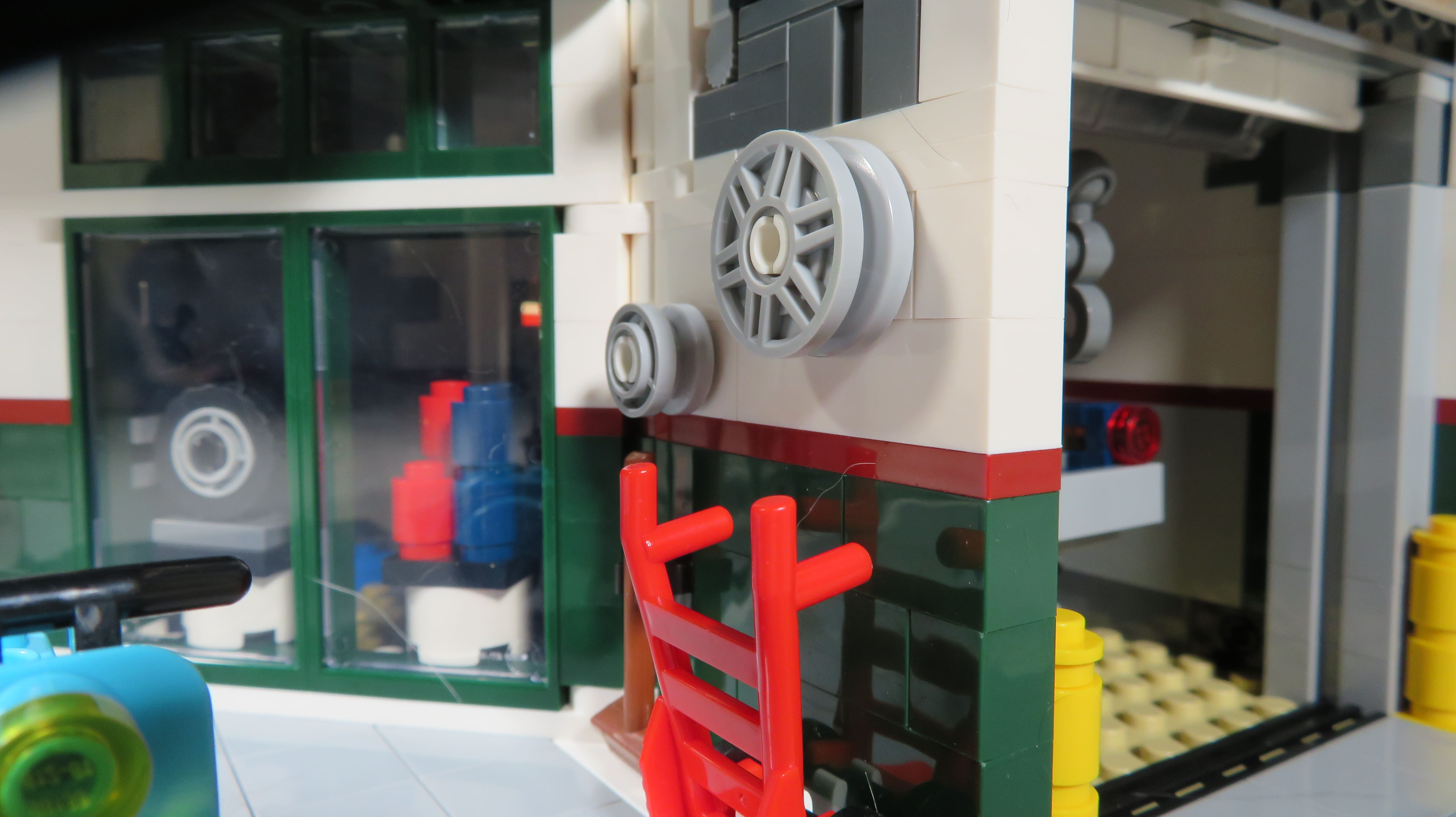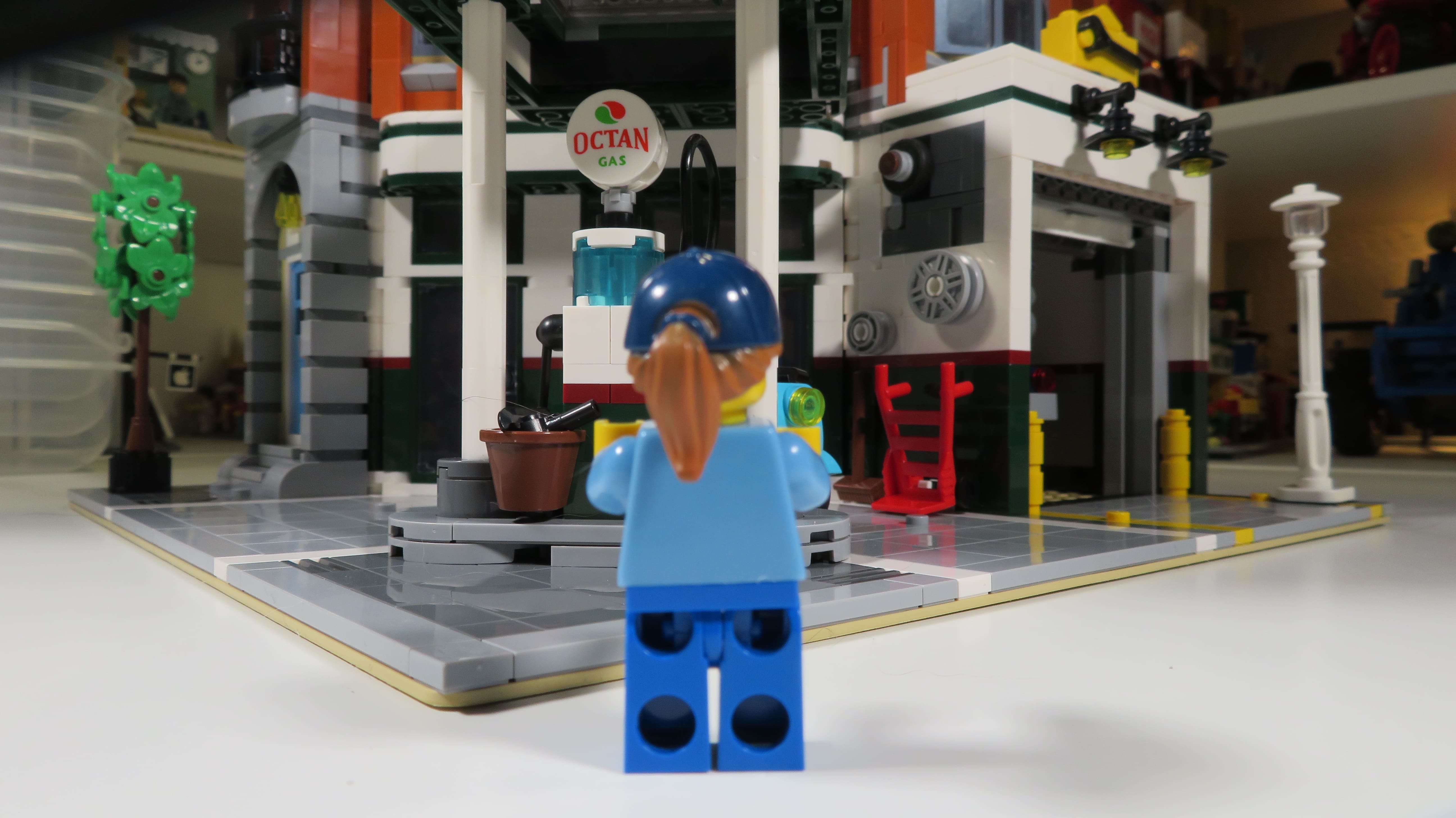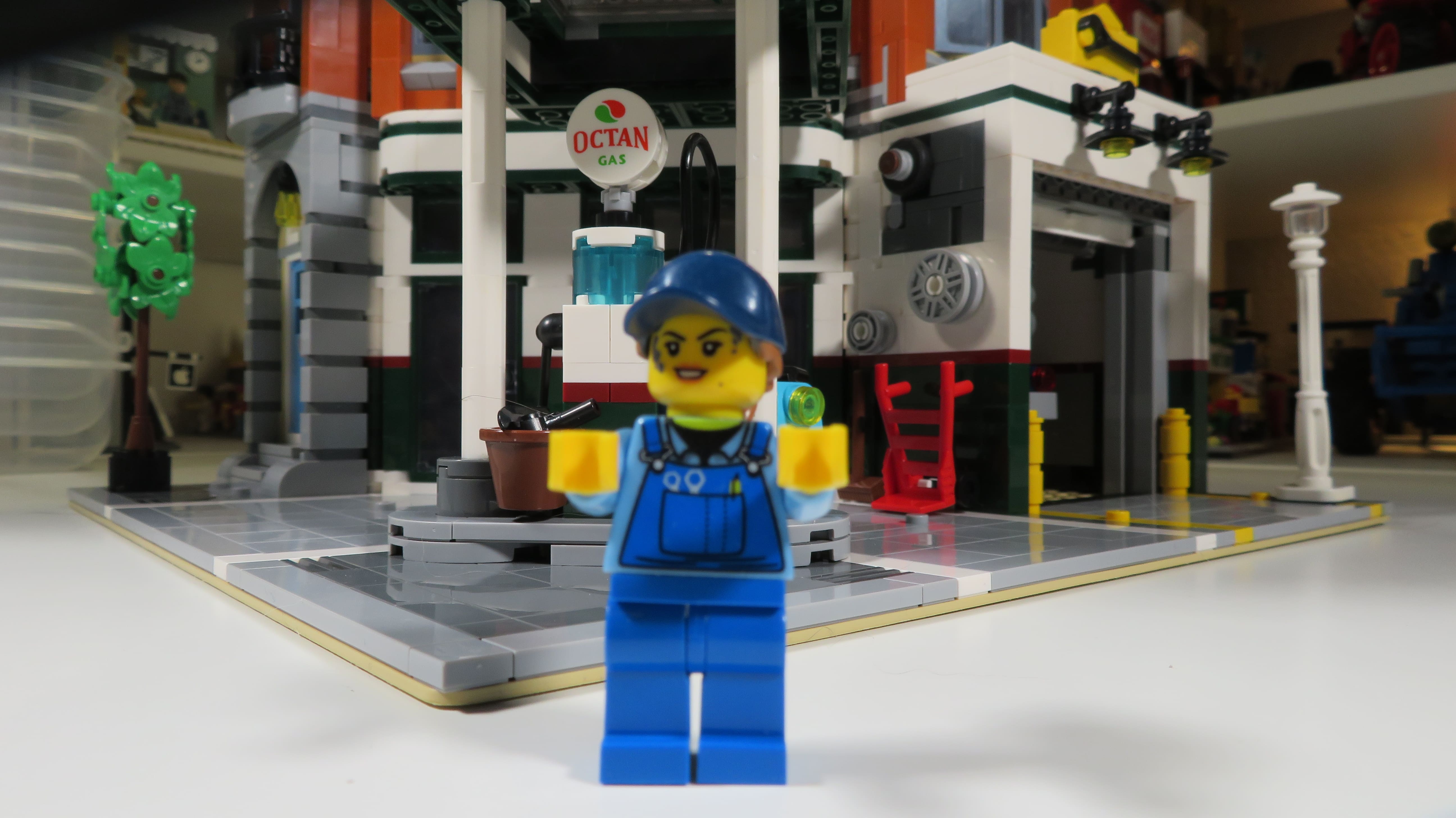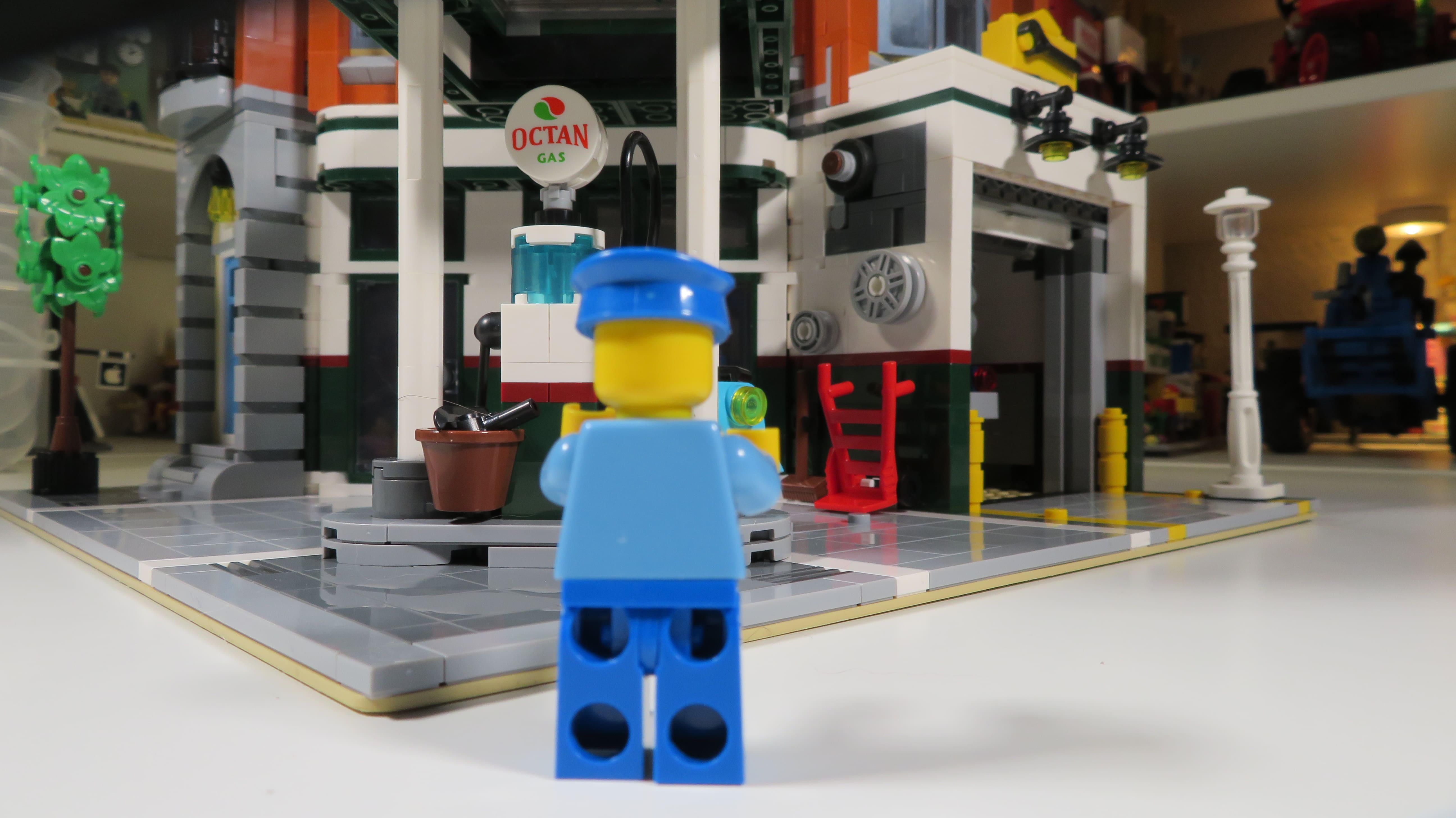 Heute stelle ich Euch das Modular Gebäude die Eckgarage von Dinggao vor. Dinggao war eine kurzfristig erscheinende Firma, die aber in letzter Zeit nichts mehr rausgebracht hat. Ich denke, es ist der Name für kurzfristig von Sembo benutzt. Die Setnummer ist DG006, das Set hat 2569 Teile. Zusätzlich gibt es einen Motorroller, einen Abschleppwagen,l 6 Minifiguren. einen Papagei, ein Kaninchen, ein Hund, einen Frosch und einen Fisch.