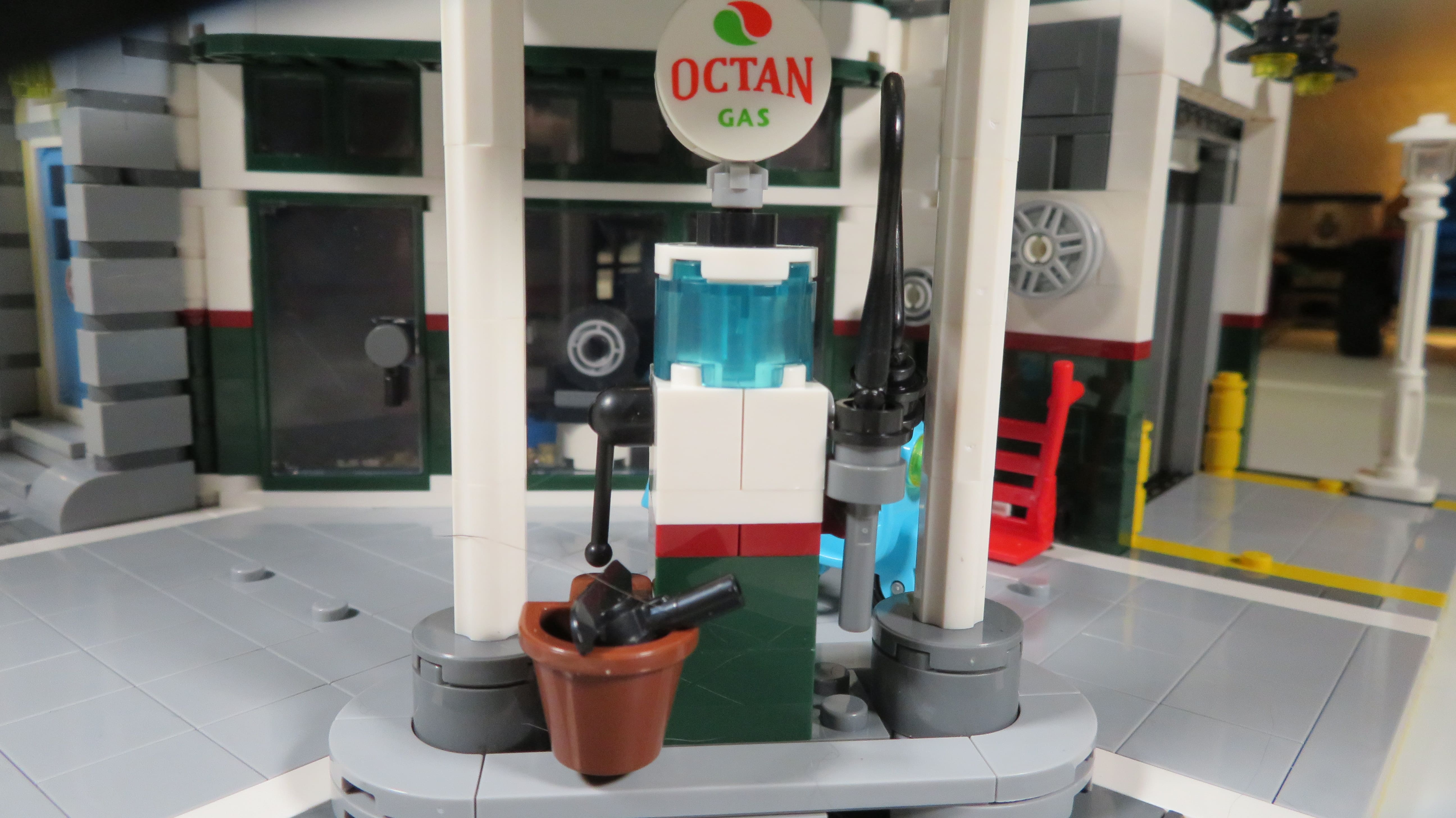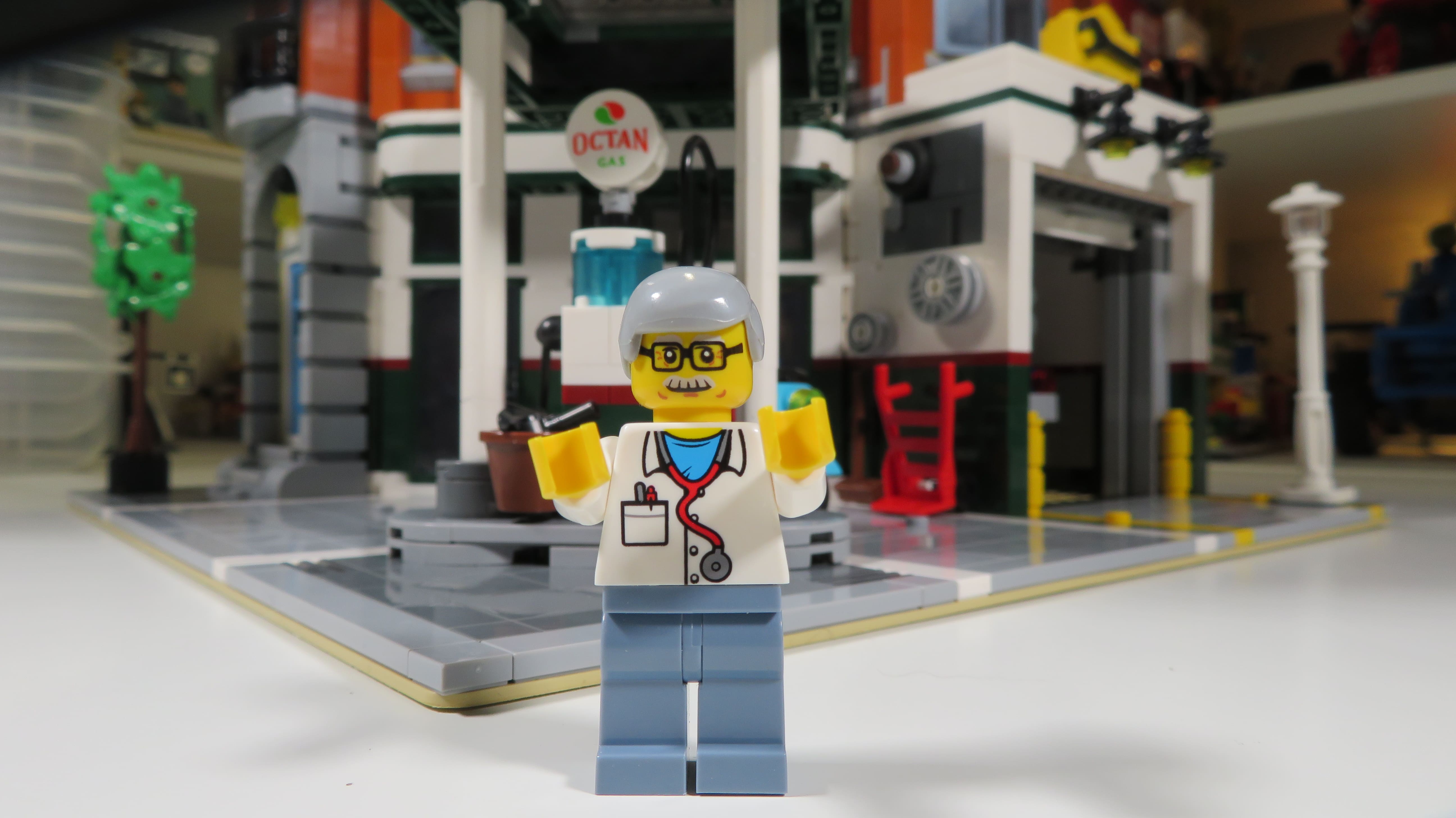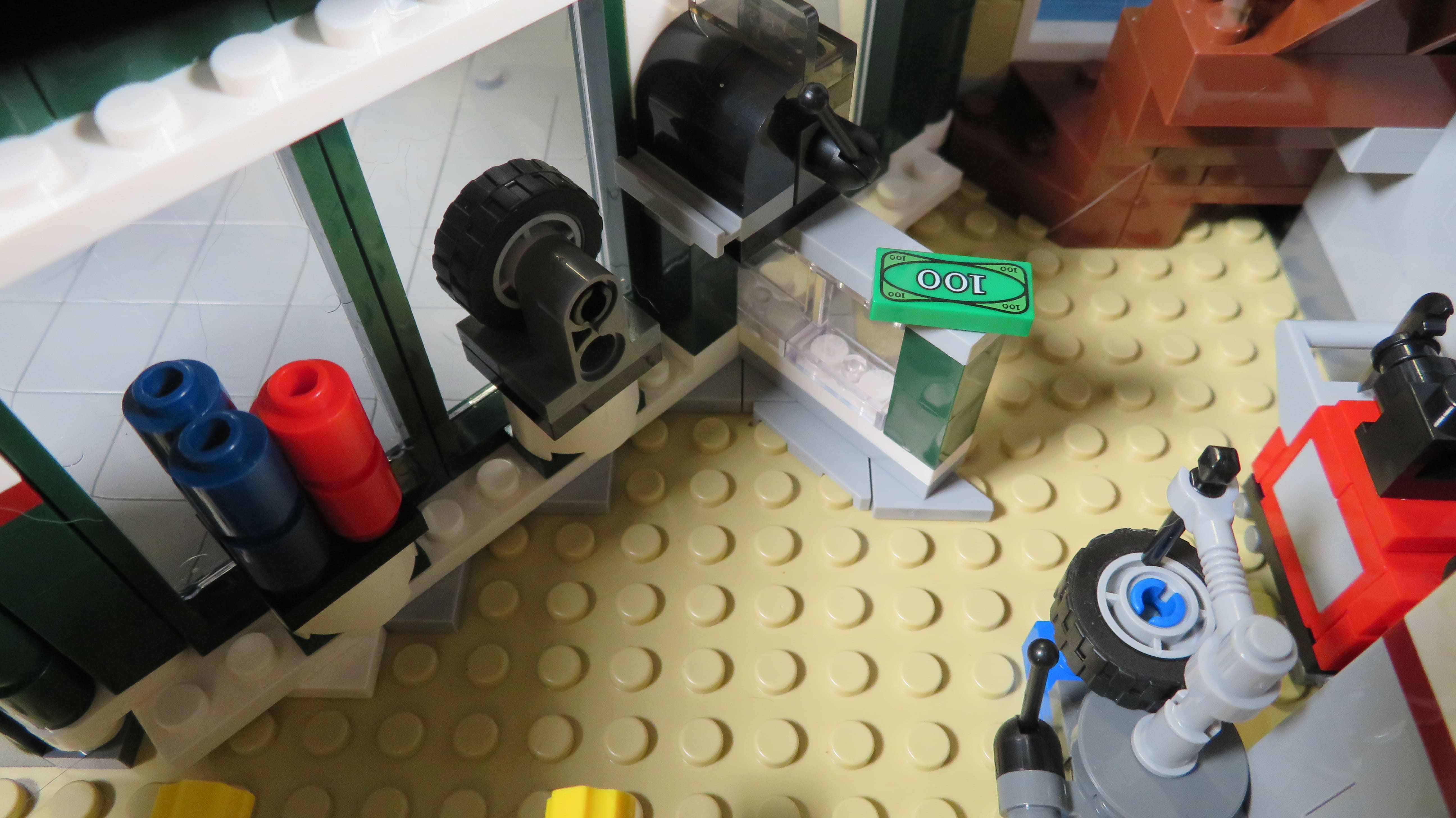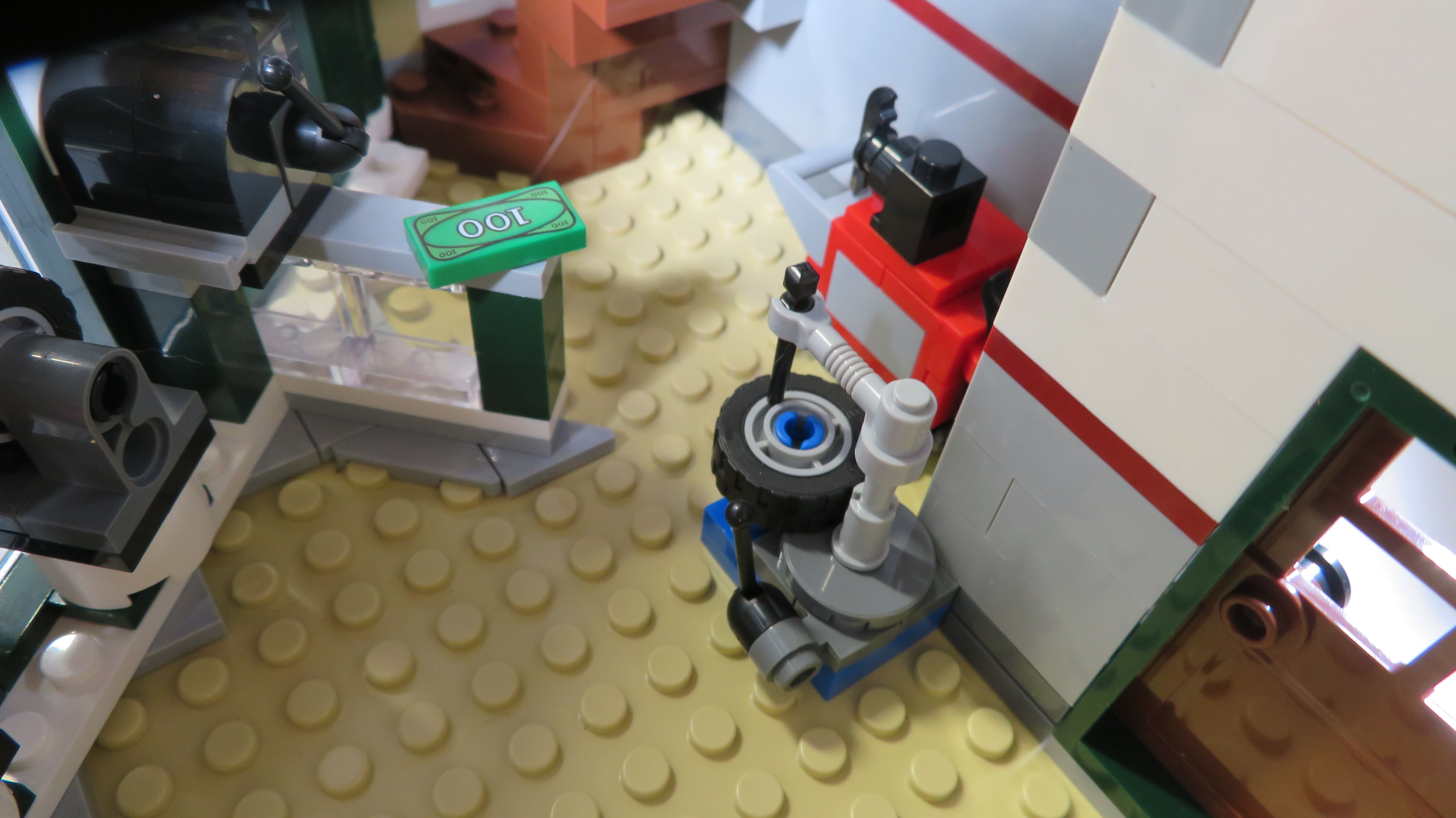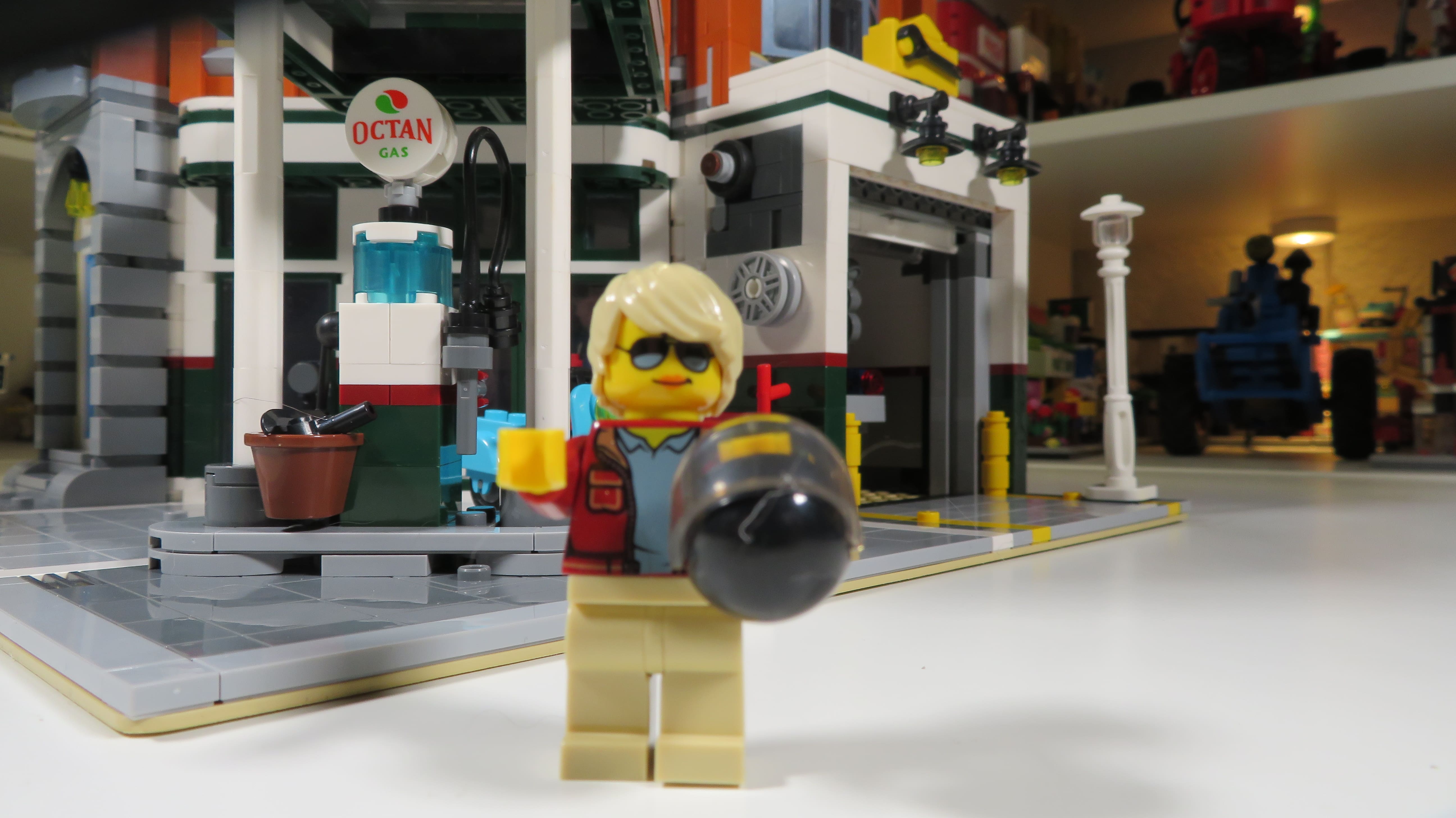 Heute stelle ich Euch das Modular Gebäude die Eckgarage von Dinggao vor. Dinggao war eine kurzfristig erscheinende Firma, die aber in letzter Zeit nichts mehr rausgebracht hat. Ich denke, es ist der Name für kurzfristig von Sembo benutzt. Die Setnummer ist DG006, das Set hat 2569 Teile. Zusätzlich gibt es einen Motorroller, einen Abschleppwagen,l 6 Minifiguren. einen Papagei, ein Kaninchen, ein Hund, einen Frosch und einen Fisch.