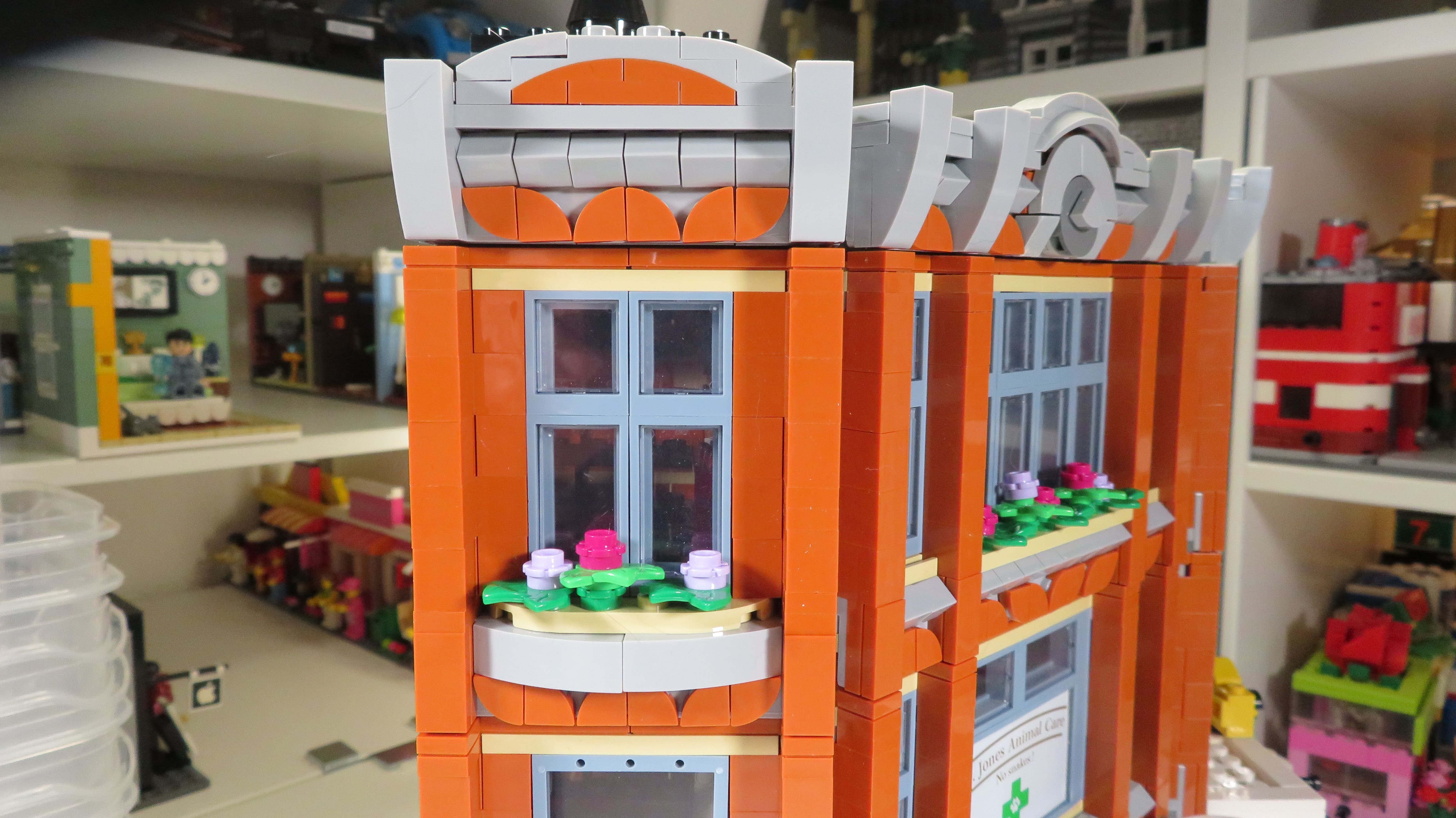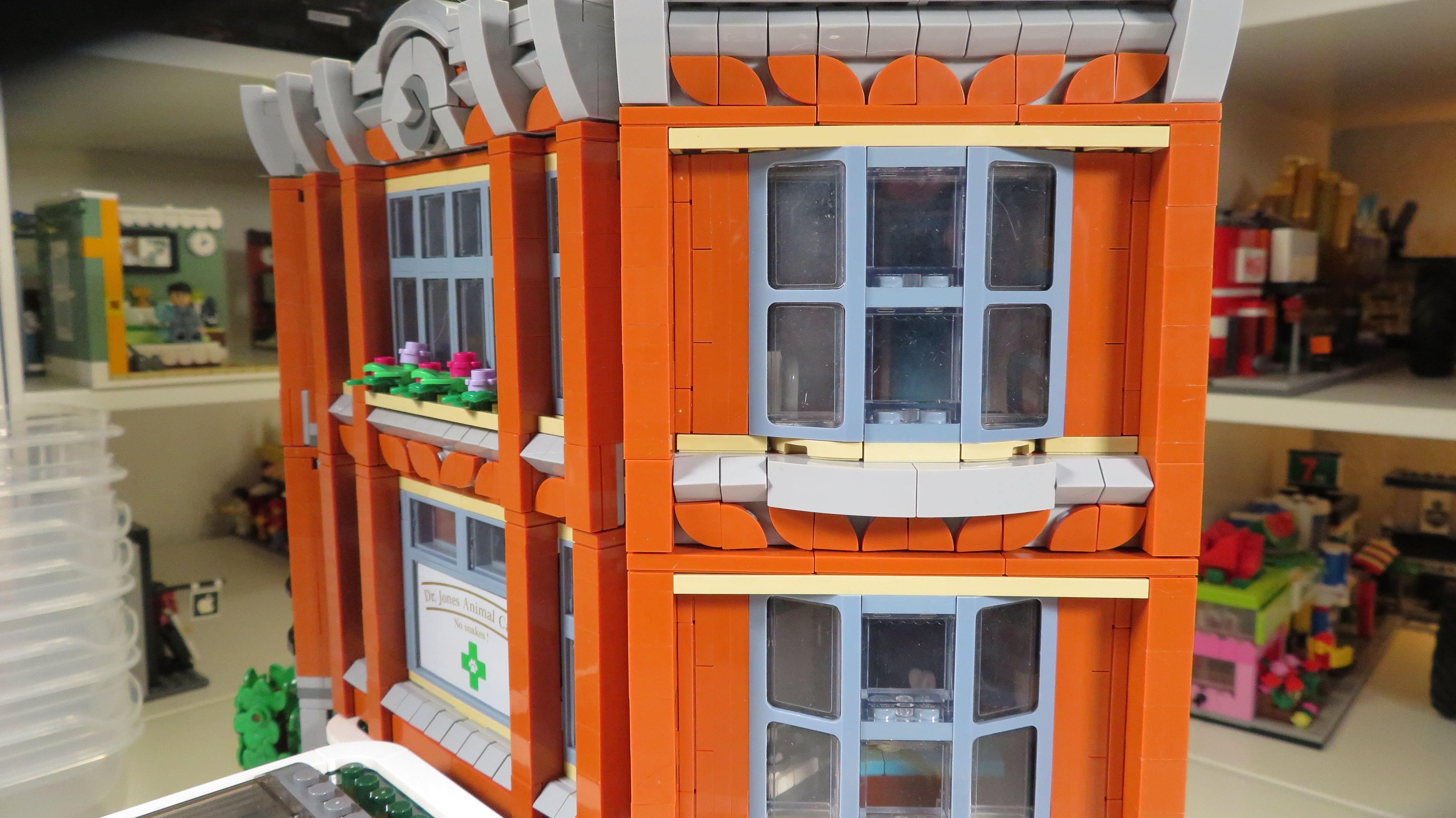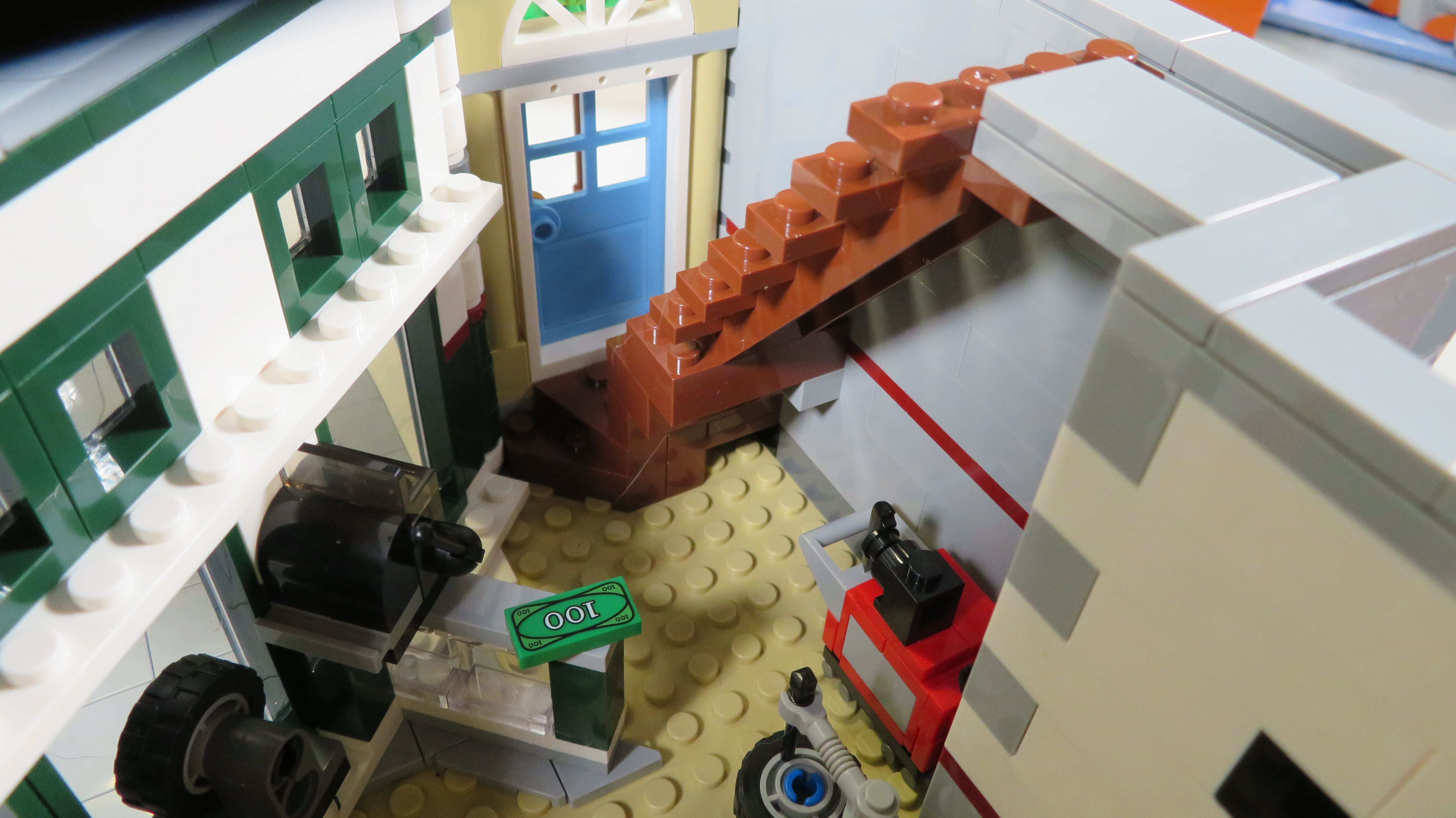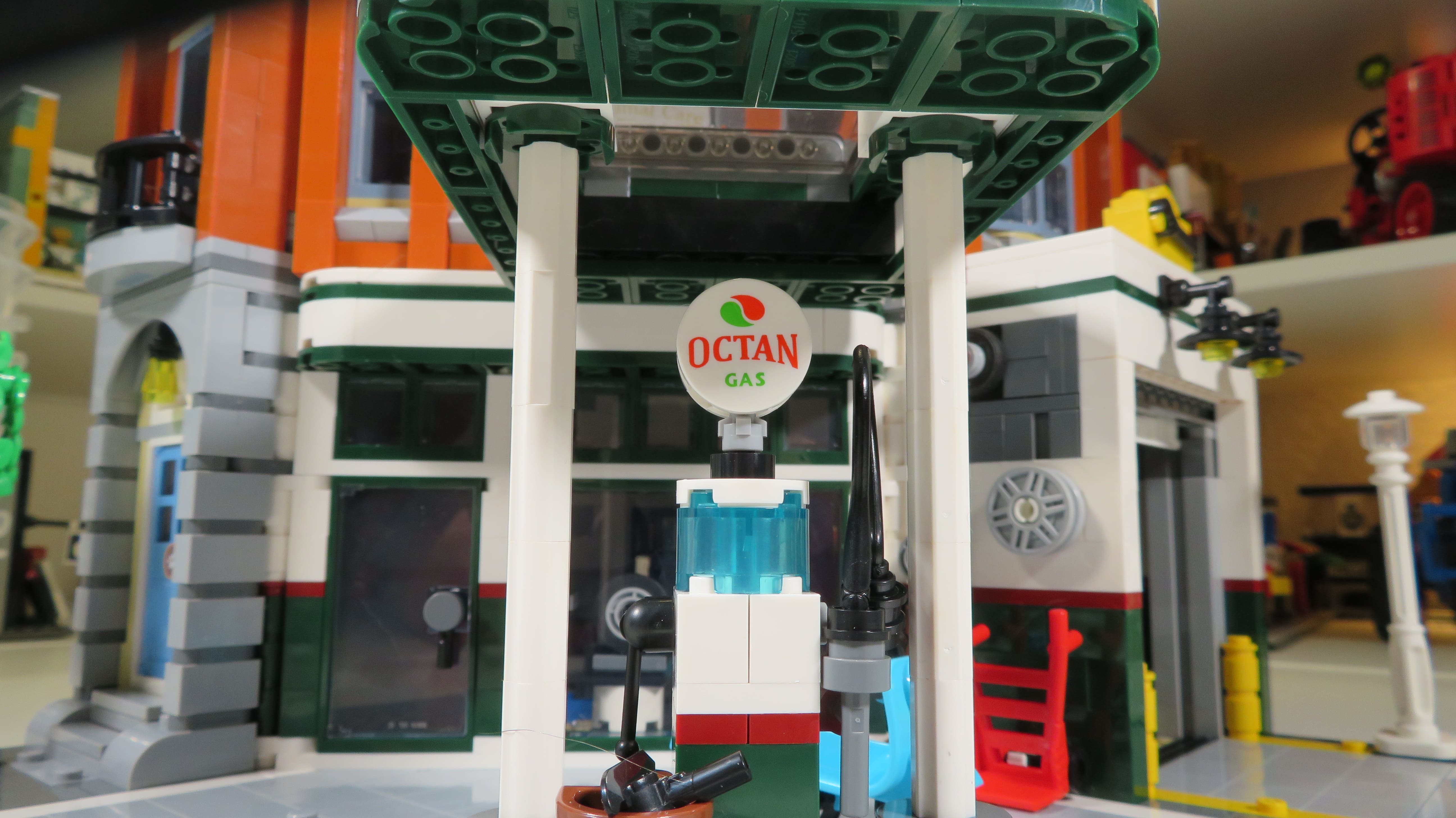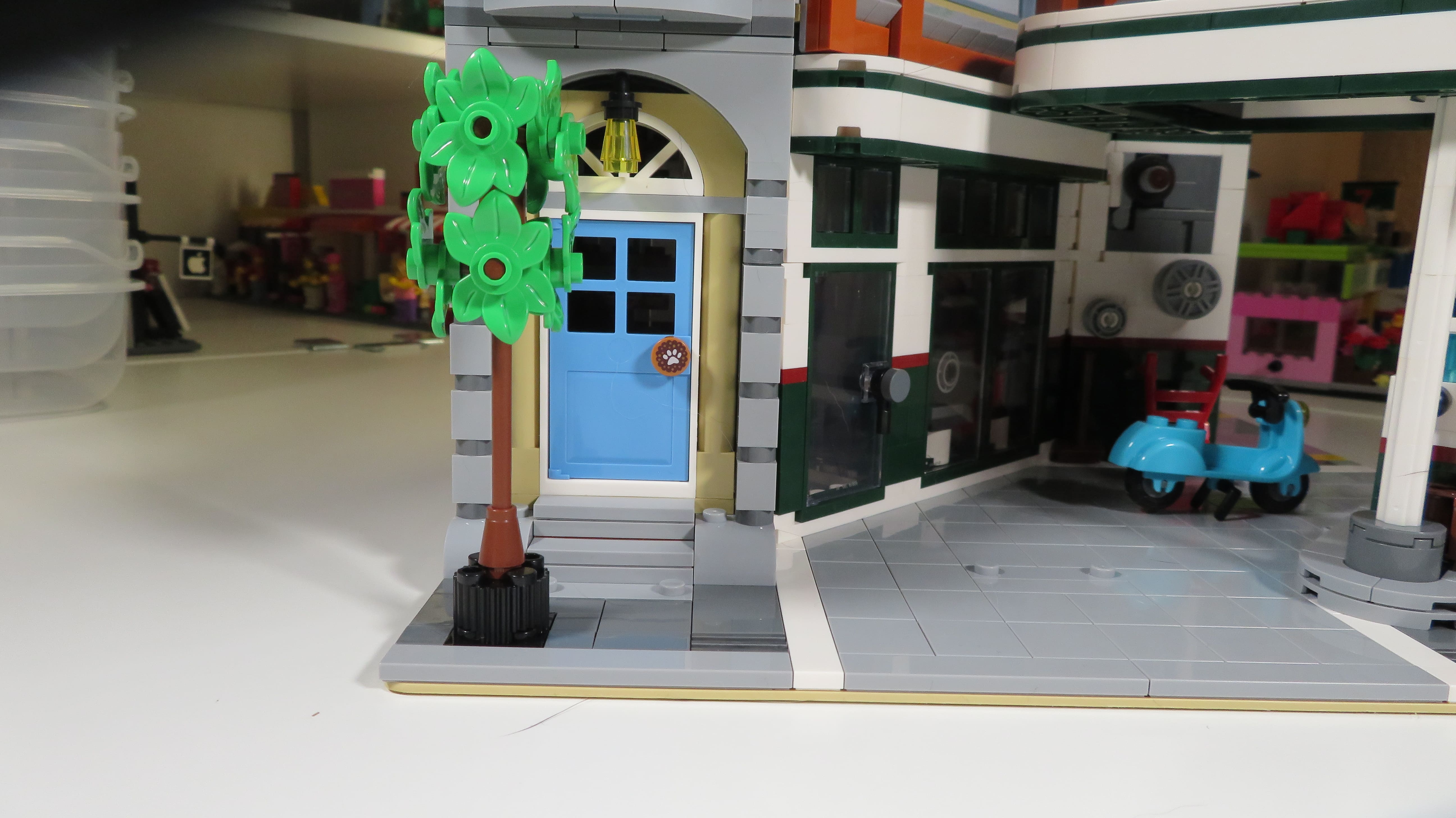 Heute stelle ich Euch das Modular Gebäude die Eckgarage von Dinggao vor. Dinggao war eine kurzfristig erscheinende Firma, die aber in letzter Zeit nichts mehr rausgebracht hat. Ich denke, es ist der Name für kurzfristig von Sembo benutzt. Die Setnummer ist DG006, das Set hat 2569 Teile. Zusätzlich gibt es einen Motorroller, einen Abschleppwagen,l 6 Minifiguren. einen Papagei, ein Kaninchen, ein Hund, einen Frosch und einen Fisch.