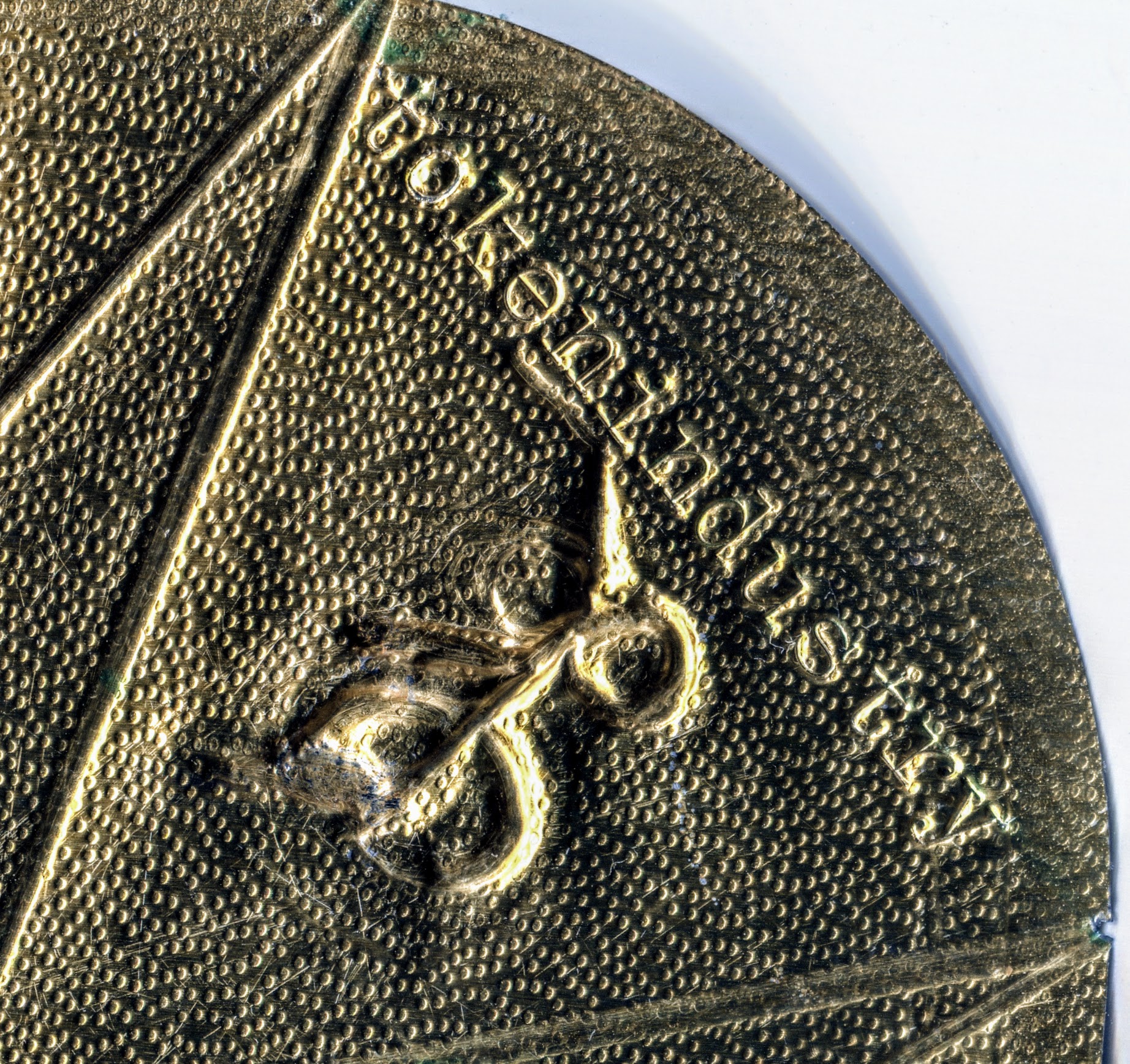 Das Design hat diese Prägung an einer Stelle platziert, die mit der Adler noch so gerade eben zur Prägung an gefahren werden kann.