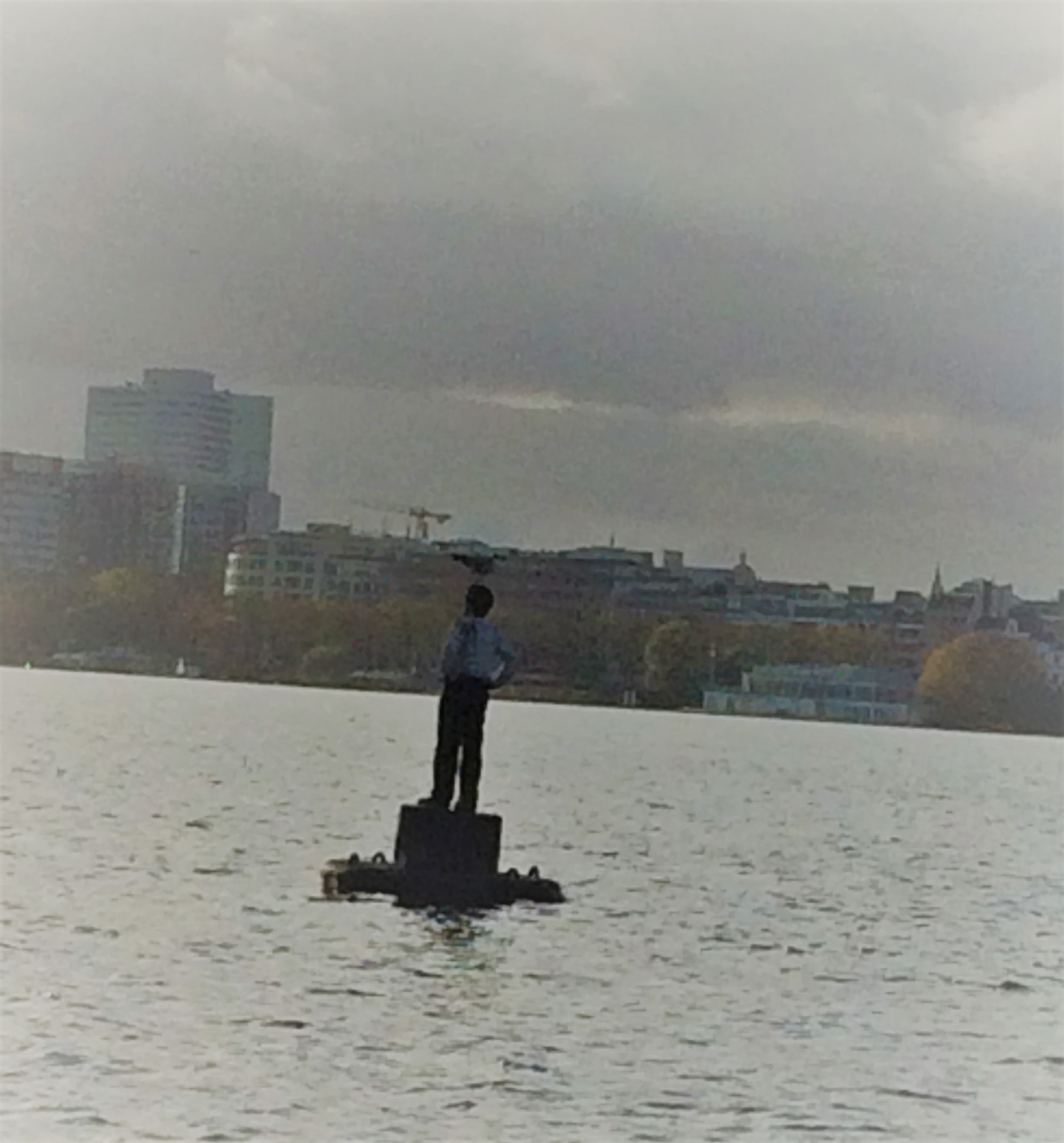 Das nächste Bild zeigt einen der „vier Männer auf Bojen“ von Stephan Balkenhol – also Kunst Skulpturen auf dem Wasser