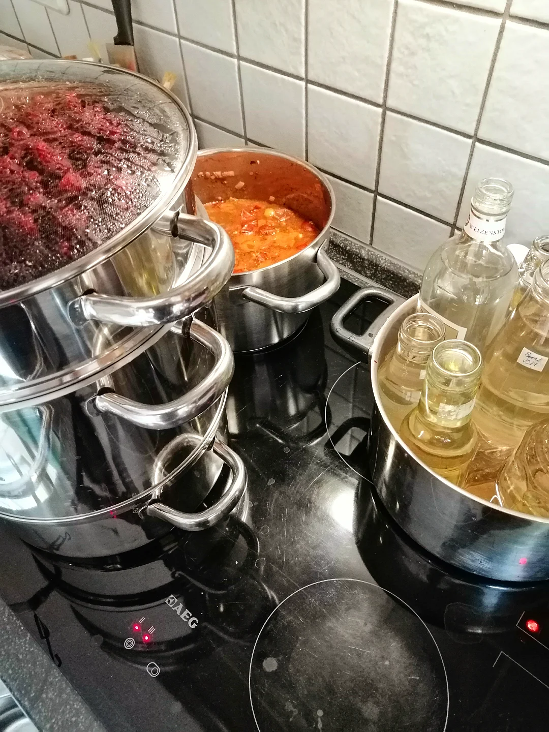 Gestern war Saft Marathon😂, 1,3 Liter Birnensaft and gut 7 Liter Brombeersaft sind dabei rausgekommen.