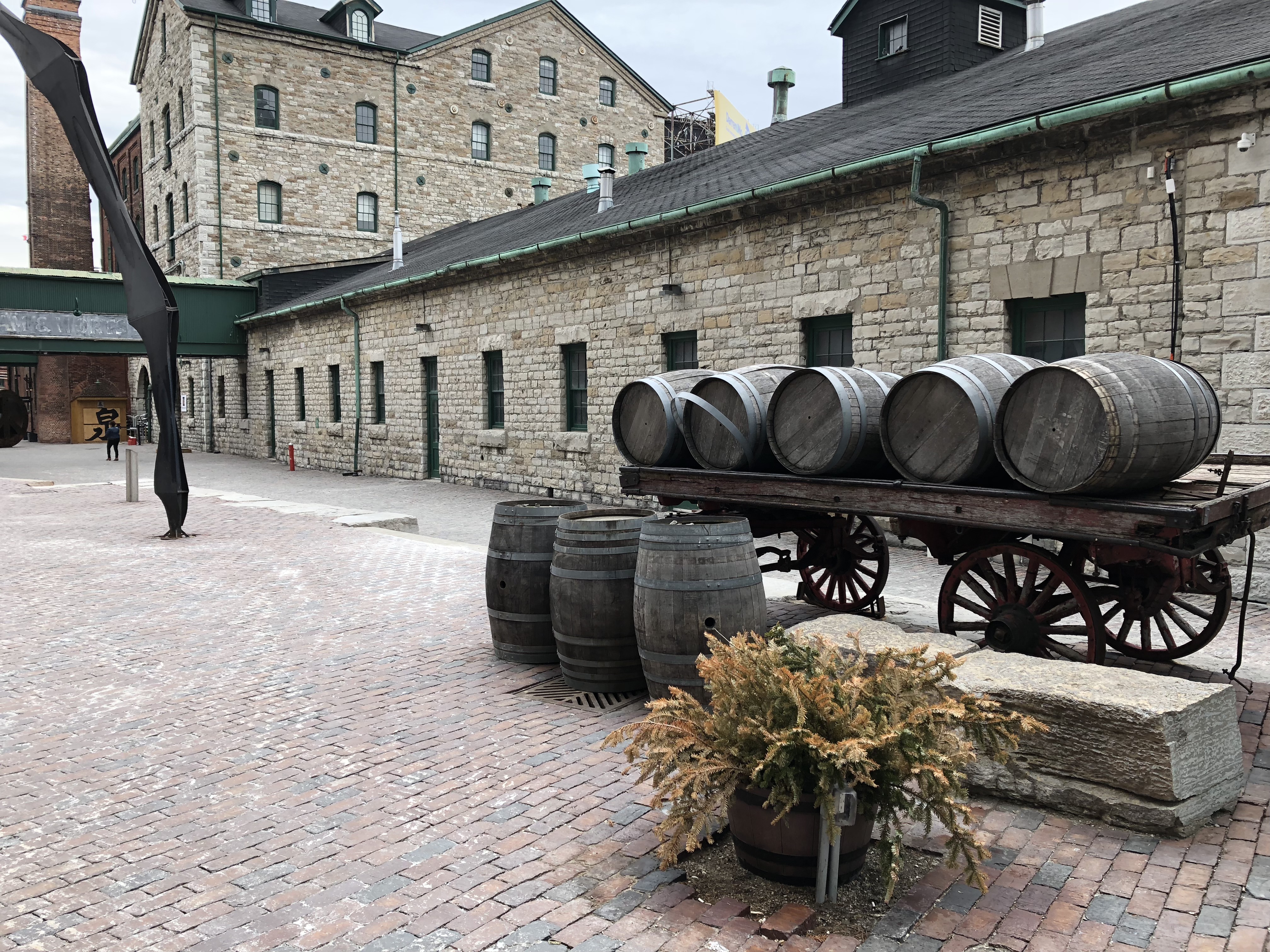 Ab 1832 wurde das Gelände von Gooderham and Worts bebaut, um bis zu zwei Millionen Gallonen (80.000 Hektoliter) pro Jahr zu produzieren - mit diesen Zahlen und der Größe von 5 Hektar stieg es in den späten 1860er Jahren zur größten Destillerie der Welt auf.