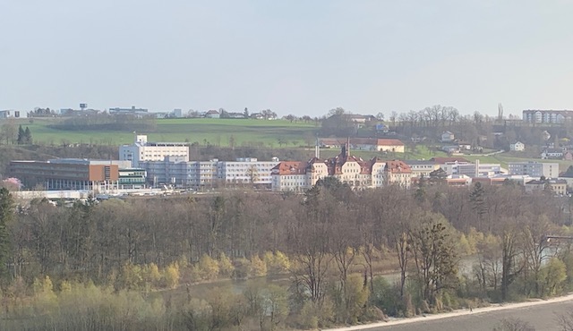 Ich habe meinen ersten Pensionstag trotzdem heute gefeiert beim Frühstücksbuffet bei uns im Hotel Christkindlwirt, in dem ich mir schon als junges Mädchen mein Taschengeld verdient hatte, während ich im Krankenhaus gelernt habe. Darum habe ich meinen Sitzplatz so gewählt, dass ich einen schönen Blick aufs Krankenhaus hatte.