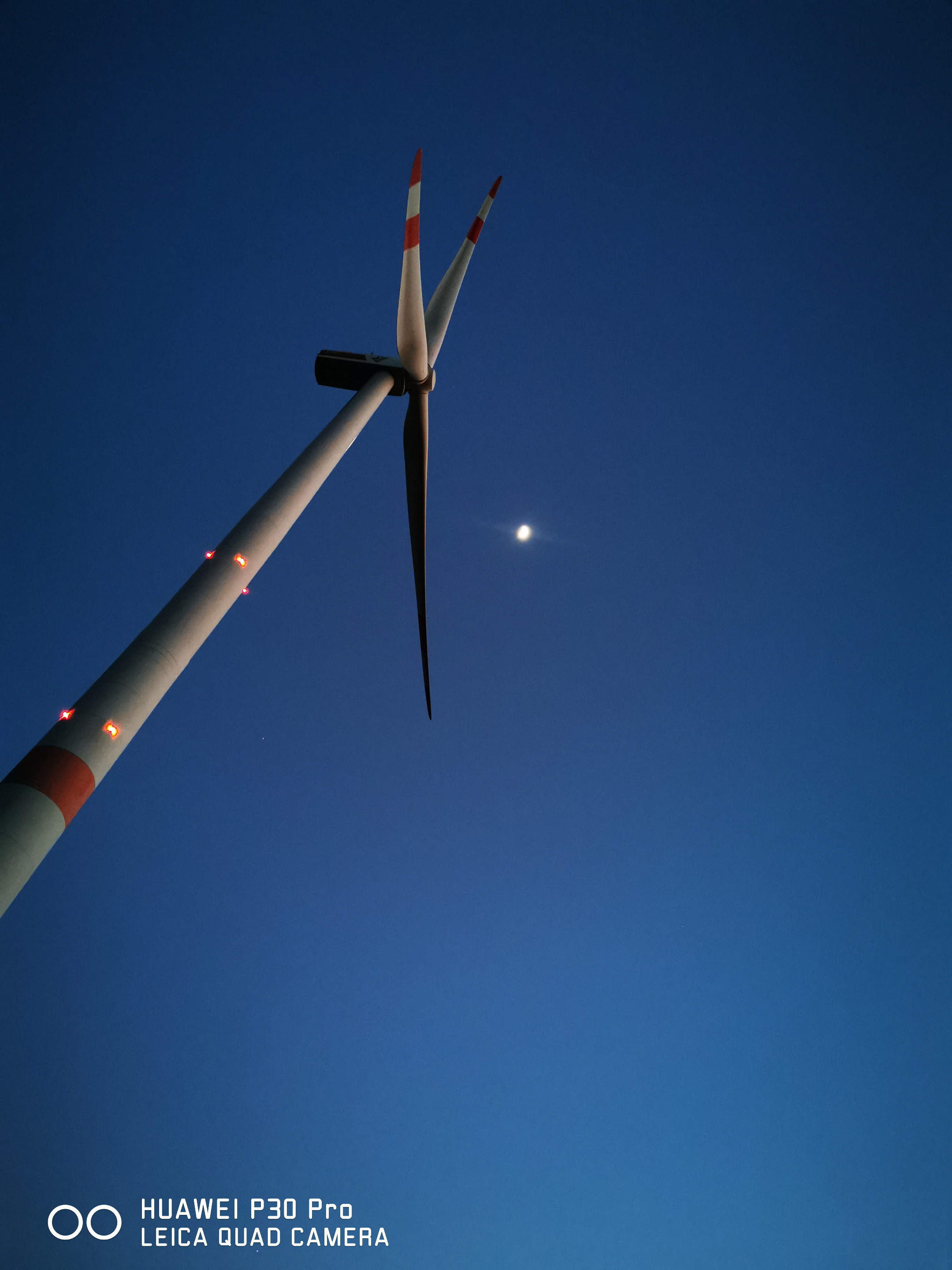 ich konnte wieder eine tolle Aufnahem vom Mond machen - davor seht ihr ein Windrad.