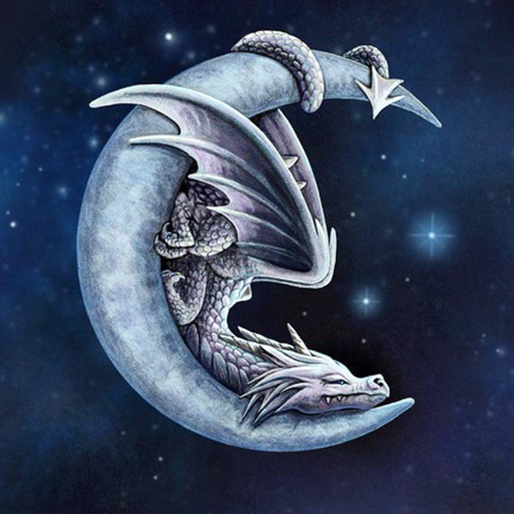 Das Bild hat ChatGPT für mich generiert, es zeigt einen silbernen „Monddrachen“ der ebenfalls ruht 🌙