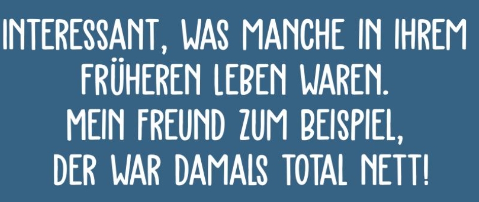Interessant, was manche in ihrem früheren Leben waren. Mein Freund zum Beispiel, der war damals total nett!