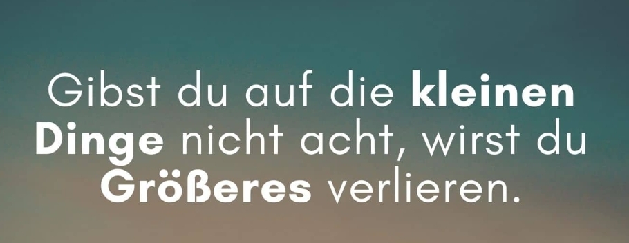 Kleine Dingeyorra (57)in #deutsch • 2 years ago Spruch des Tages Gibst du auf die kleinen Dinge nicht acht, wirst du Größeres verlieren. #spruch