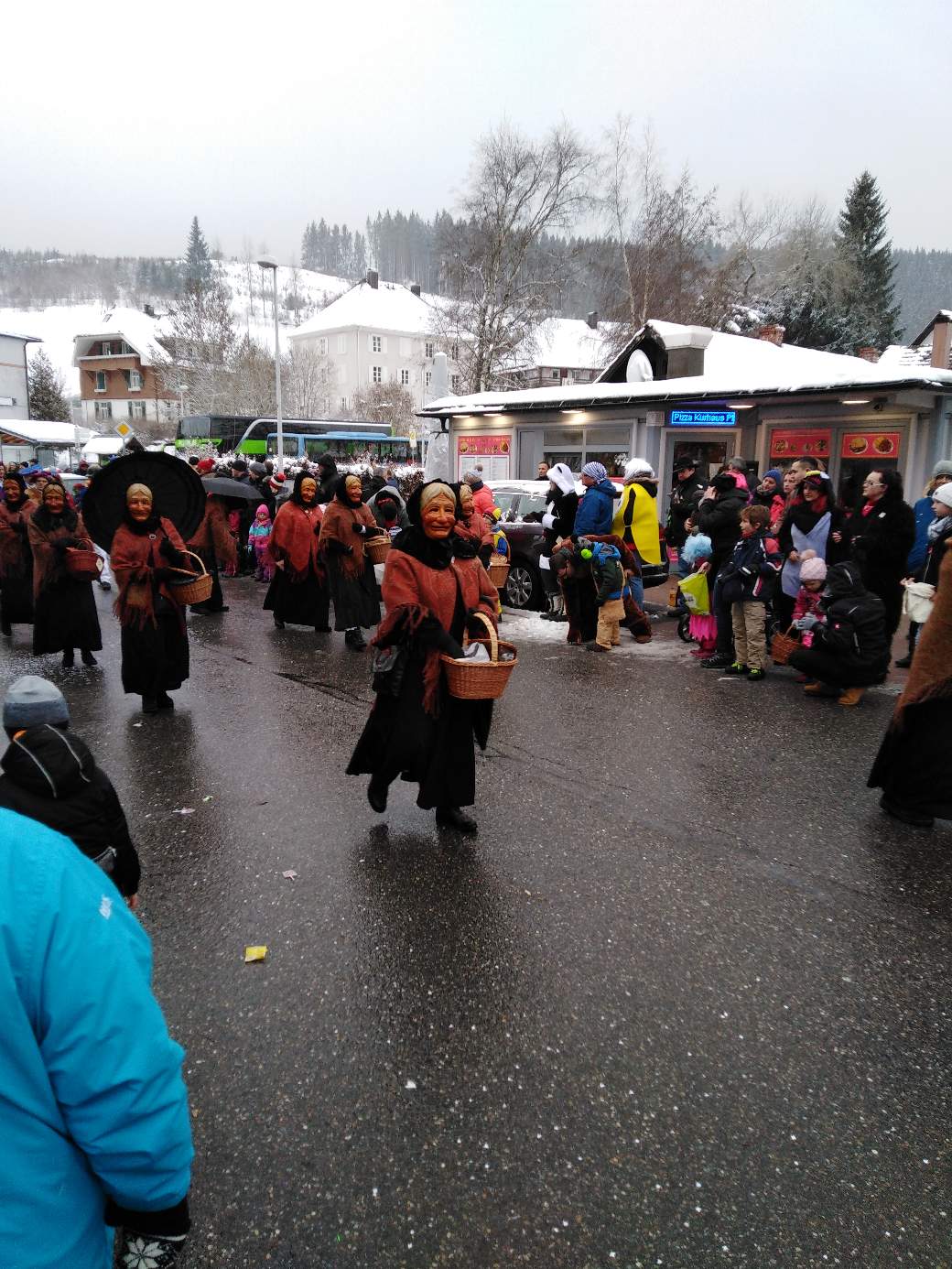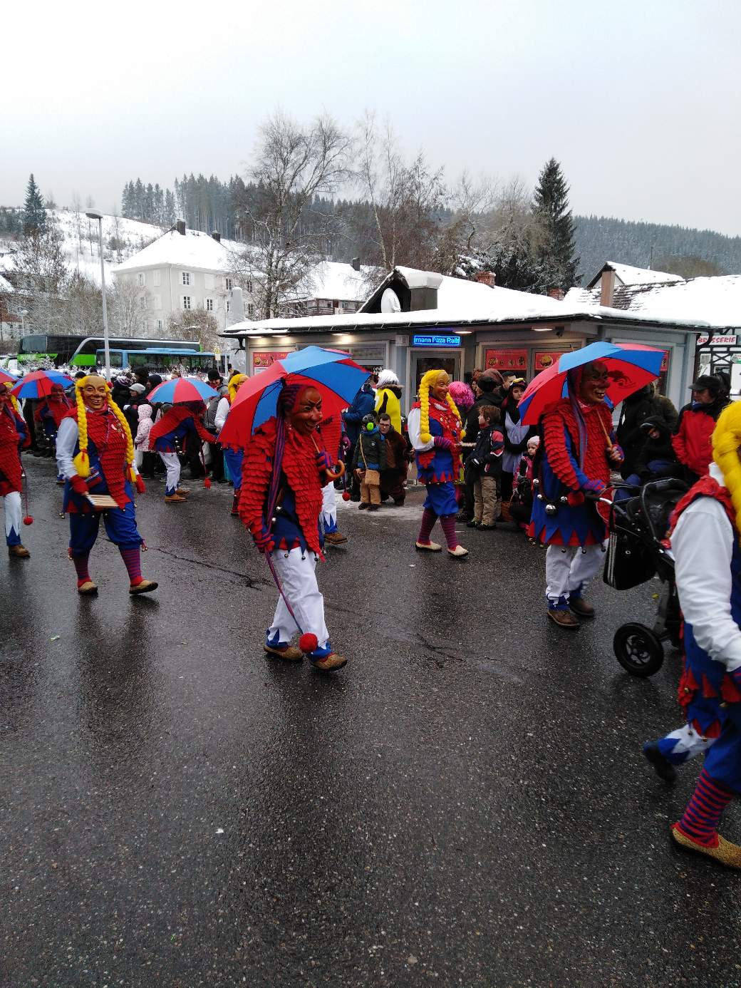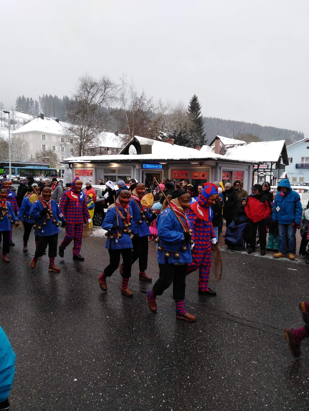 The Narren (Jesters) society of the city Lenzkirch has 150th anniversary this year. It was high life the whole weekend. They had a meeting on Sunday morning 7 am when I was getting breakfast buns. That noisy you understood every single word two streets away.