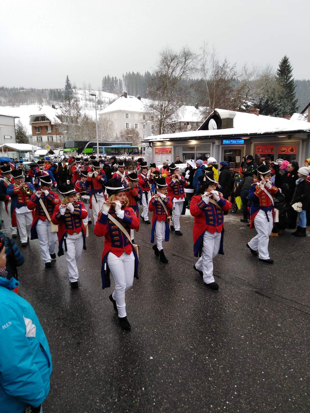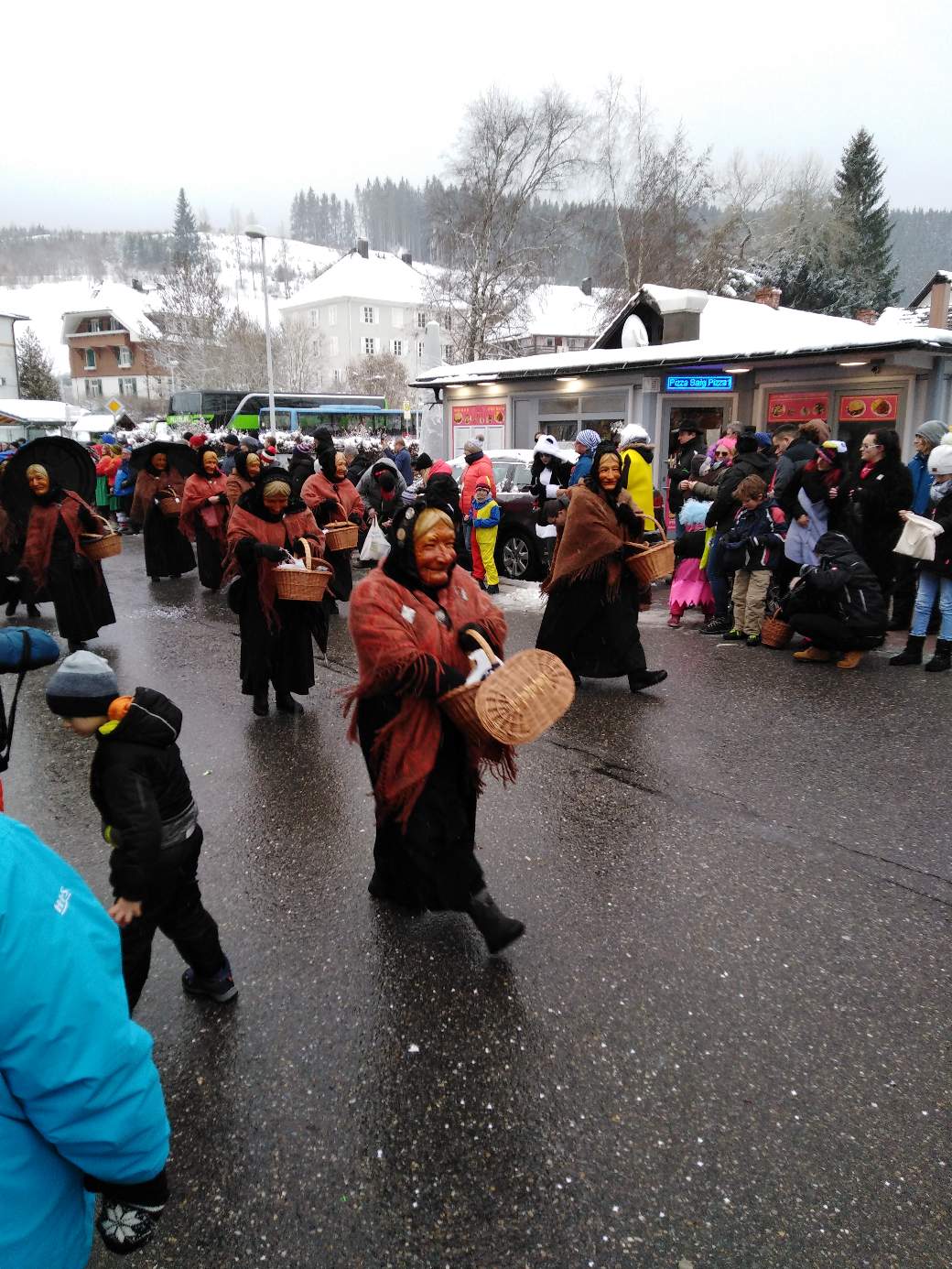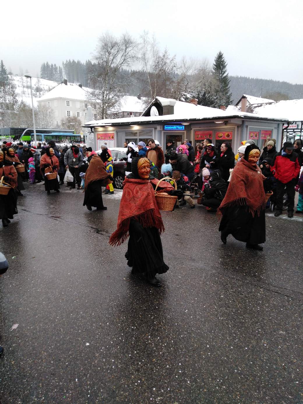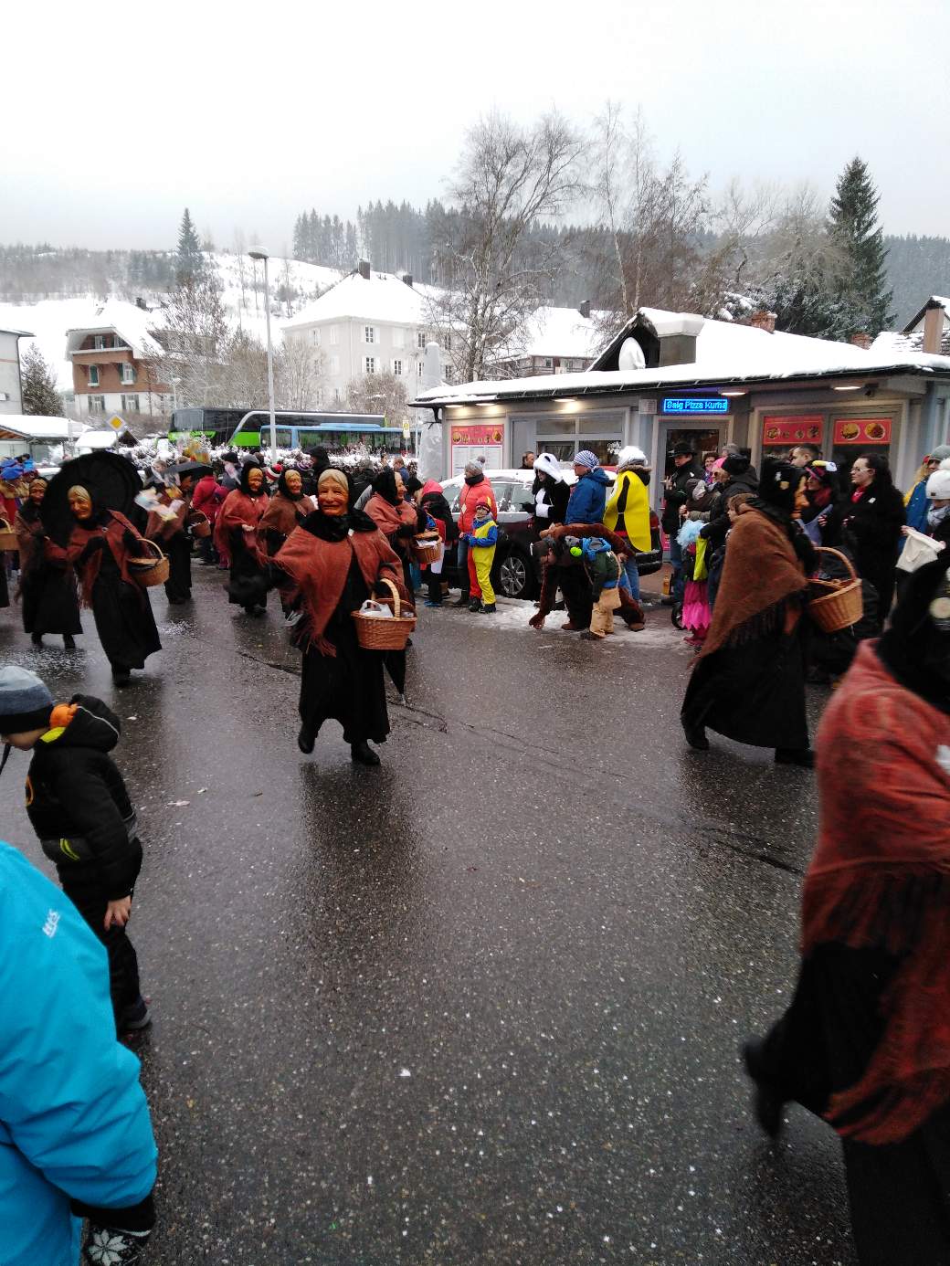 The Narren (Jesters) society of the city Lenzkirch has 150th anniversary this year. It was high life the whole weekend. They had a meeting on Sunday morning 7 am when I was getting breakfast buns. That noisy you understood every single word two streets away.