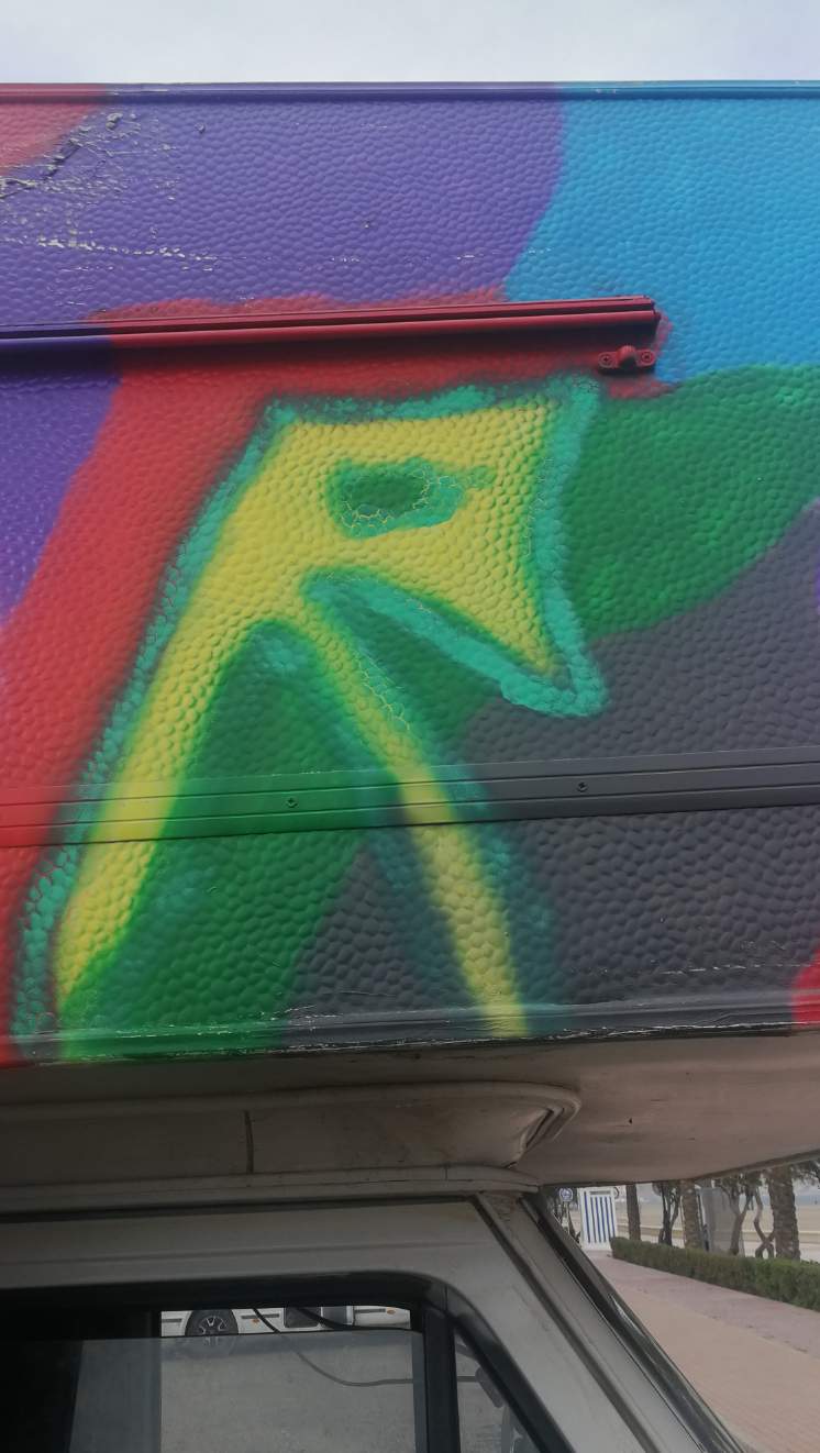Wie es der "Zufall" so wollte, sind wir auf unserer Route zurück zum Meer wieder an dem Campingplatz vorbei gekommen, wo wir im Januar leider aufgrund eines blöden Autos unseren geliebten Kater Ricky begraben mussten. Nachdem das Wetter auch ziemlich bescheiden war und wir Landstrom brauchten, war für uns klar, hier machen wir nochmal Halt und besuchen unseren Kater. Wir hatten ihn nahe der Berge unter einem schönen Olivenbaum begraben. War gar nicht so leicht, den richtigen Baum wieder zu finden. Schließlich, nach ein wenig suchen, haben wir ihn dann aber gefunden. Nobby hatte damals ein "R" für Ricky eingeritzt. (Das R auf unserem Yoshi steht übrigens auch für Ricky als Erinnerung.)