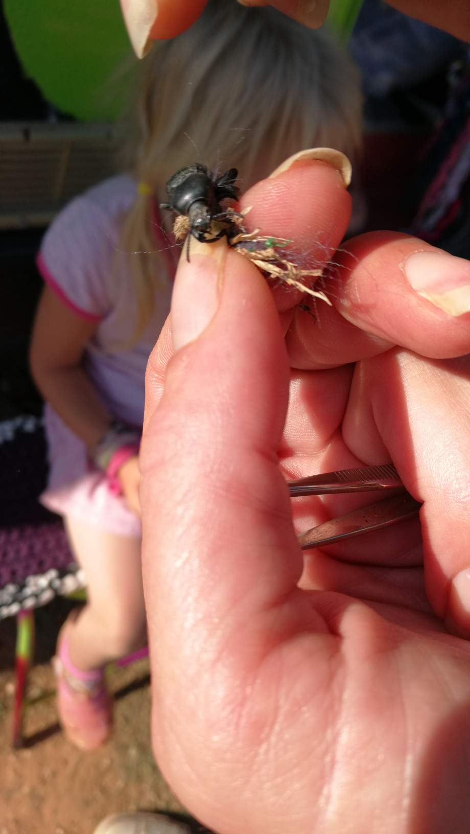 Madleen hatte ihn entdeckt - diesen kleinen Käfer, der sich irgendwie so in einen Klumpen aus Heu, Holz und Haaren oder ähnlichem verworren hatte, dass er nicht mehr laufen konnte.
