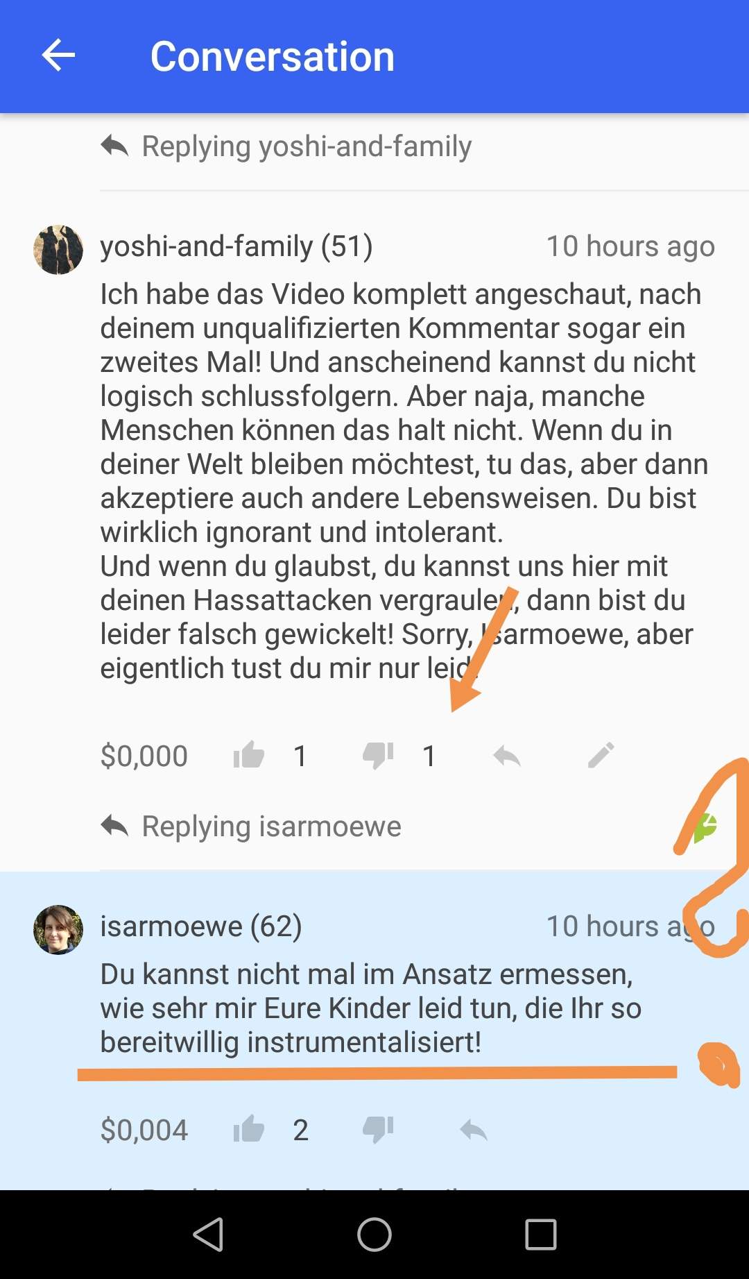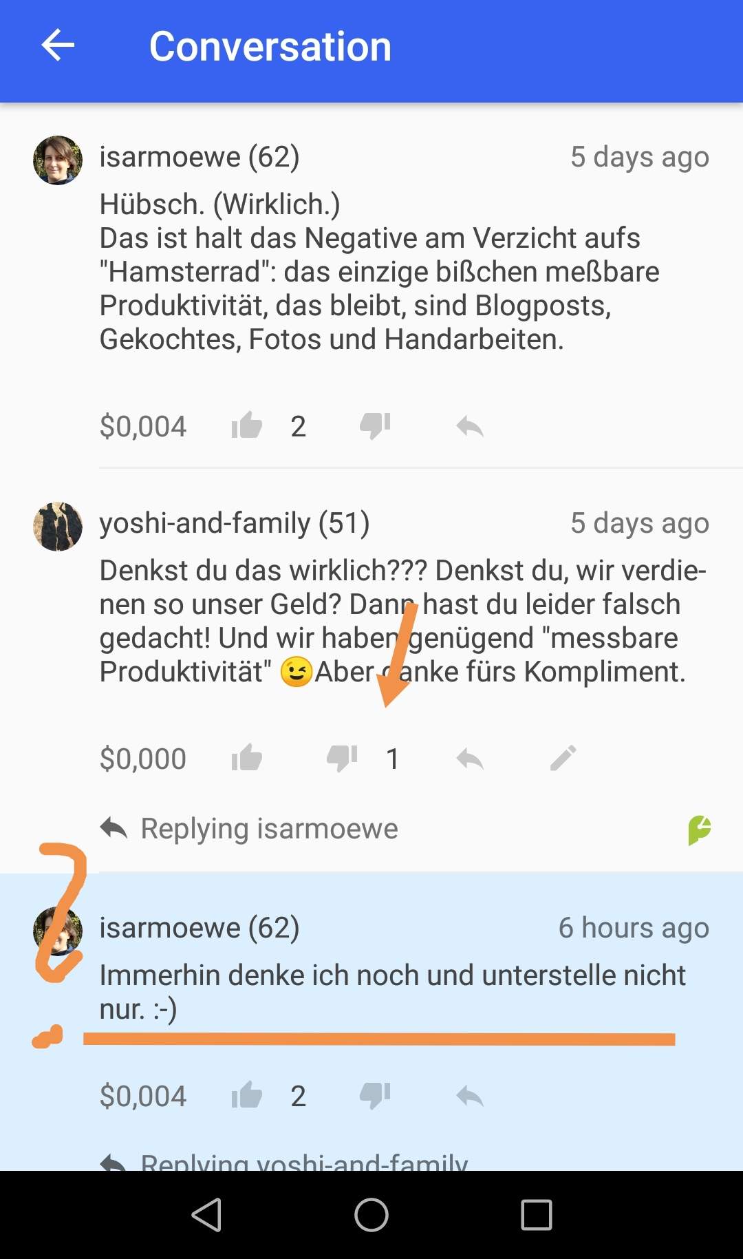 Nun beginnt sie sogar, Posts oder Kommentare down zu voten.