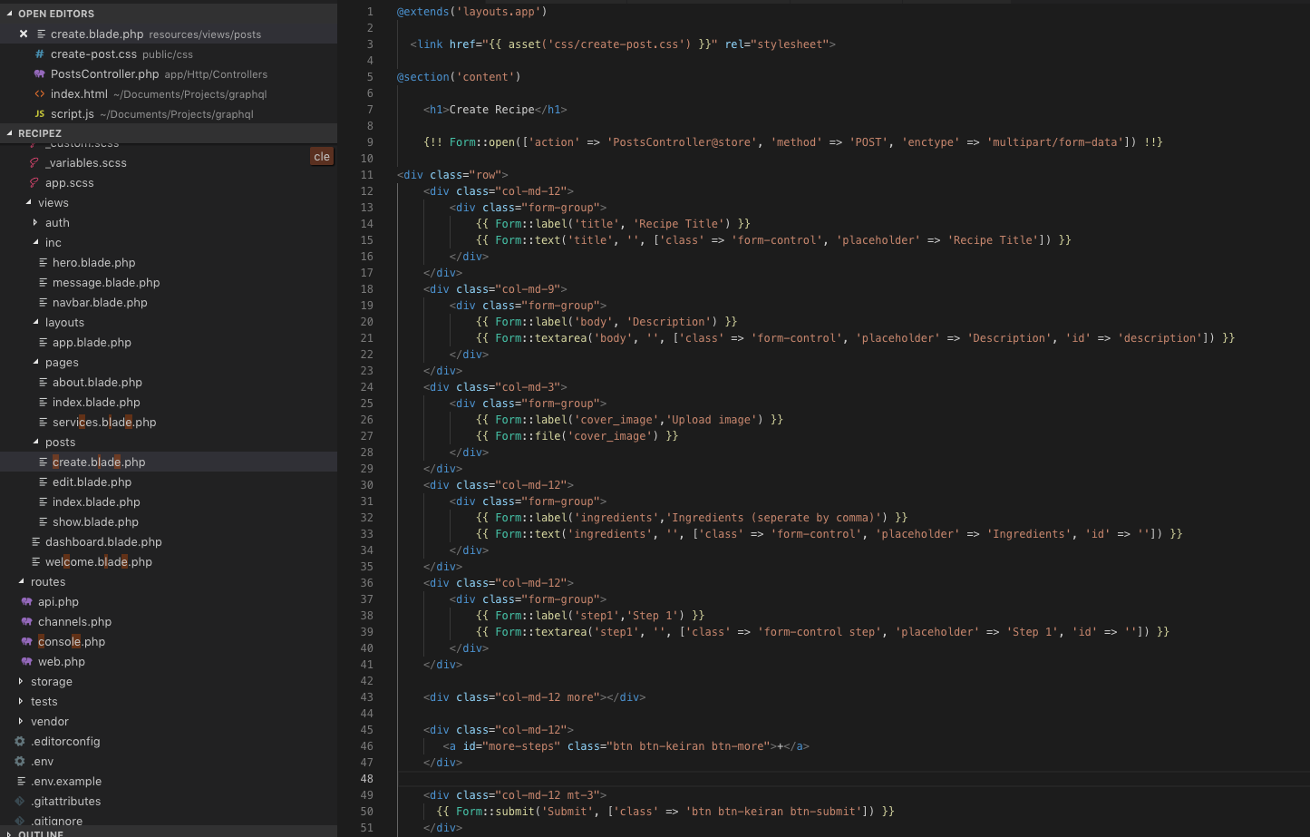 **TLDR** I am building a web application from scratch using PHP Laravel and learning in the process, the application will be a Recipe sharing app that I will build on overtime.