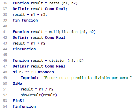 Finalmente creamos las funciones correspondientes para multiplicar y dividir que describí en el inicio.