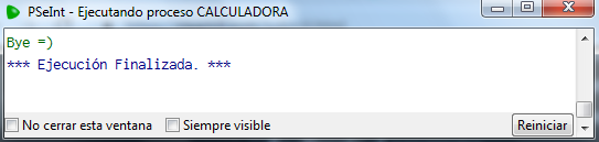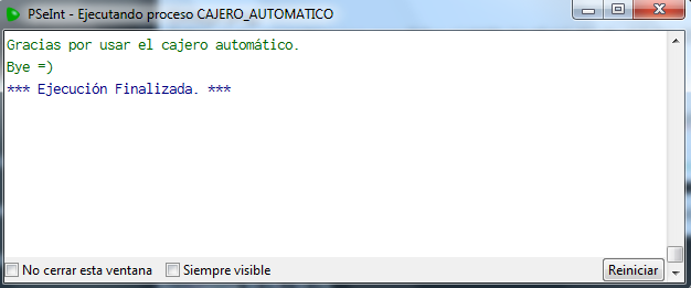 Se limpia la pantalla automáticamente y se nos muestra el mensaje de despedida.