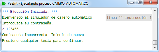 Como podemos ver, se nos solicita la contraseña, y si esta es incorrecta muestra un mensaje indicando que se debe intentar nuevamente, para ello debemos presionar cualquier tecla para iniciar nuevamente.