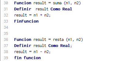 Ahora si, creamos la función de suma y resta, en las cuales establecemos que los dos números introducidos por el usuario sean sumados o restados, según corresponda la opción que haya seleccionado el usuario y se retorne el resultado.