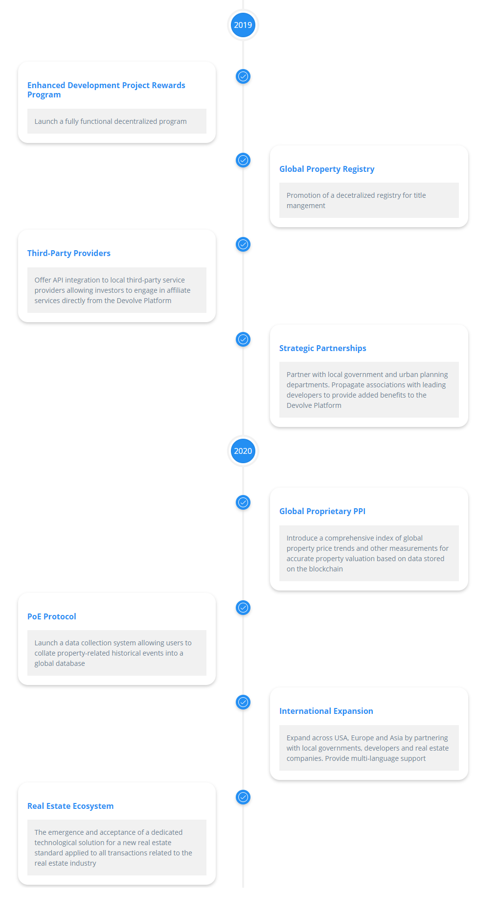 Devolve Developer created a new business model that will reform the real estate industry, by leveraging blockchain technology and focusing on a decentralized system that increases efficiencies and reduces costs. The Devolve innovative platform embeds superior disruptive technologies with advanced mobility, versatility and scalability to secure competitive real estate investment opportunities globally using renowned predictive algorithm model driven by noble prize empirical research.