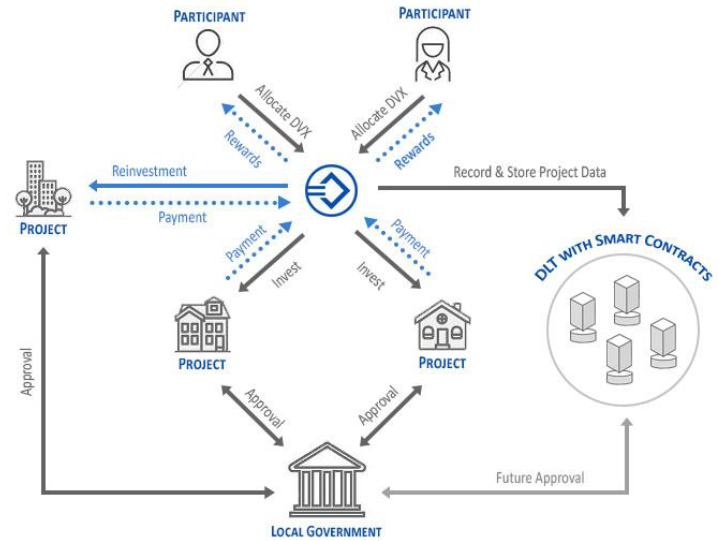 The Development Project Rewards program allows individuals to participate in the real estate development market. Devolve Developer searches for development project opportunities and add accepted projects to their Core Portfolio. These development projects are listed on the Devolve Platform for contribution. Token holders can search the listing of development projects, analyze and compare the projects’ risks, rewards and other traits, and select the projects that they want. Once the project is selected, token holders will determine the amount of DVX to contribute to each project and then start earning rewards. Token holders are in total control of their contribution since they can start or end their contribution in a project whenever they want.
