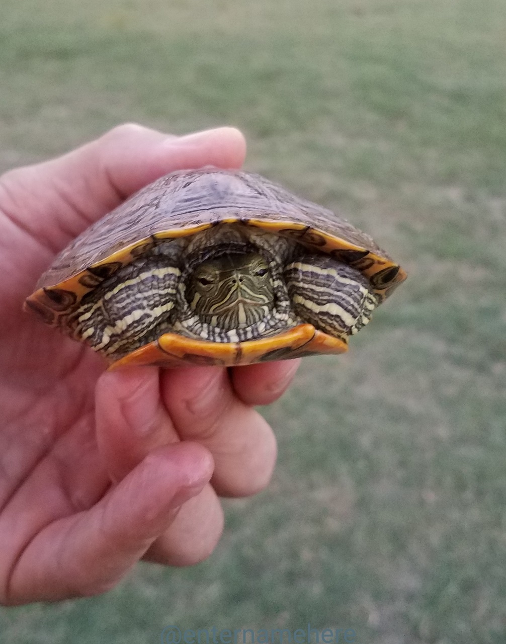 The turtle swam away pretty quickly when he got to the pond, all's well that ends well :)